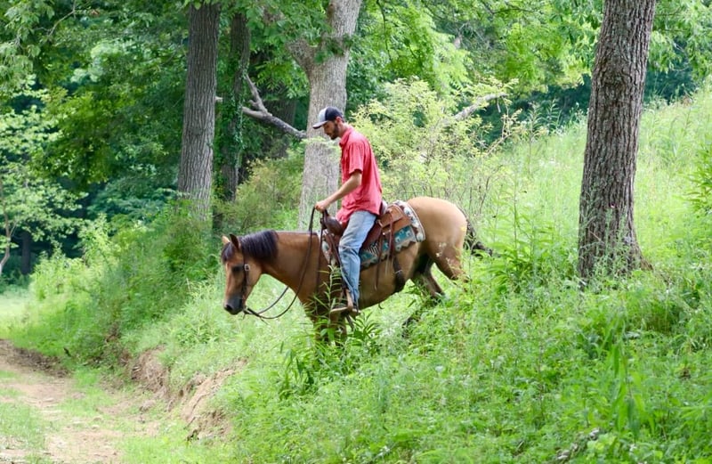 ONLINE AUCTION Place your bids at www.PlatinumEquineAuction.com Starting Bid $3500 Auction ends September 22nd, 2024 Need a new saddle? Check out White Rock Saddles on our website or Facebook! Jasper is a 6 year old, 15 hand gelding. He has a cute expression and attractive personality. He has a solid, walk, trot, and canter. He rides soft in the bridle and responds to leg pressure well. He is experienced on the trails. There isn’t anywhere I wouldn’t take Jasper trail riding. We have trail ridden him all over Kentucky, Tennessee, and Alabama. Most recently we took him to CO and went trail riding in the Rockies. He took in all the new sights, sounds, and smells with complete grace like he had ridden there his entire life. The rougher and different terrain didn’t phase him at all, and he really enjoyed the quick flowing rivers. He crossed them without a second thought. We have had complete beginners riding him on the trails and he takes care of them the absolute best. He will lead the group, or follow along with the beginners or experienced riders alike. He shows great potential for being an English horse as well. He is a nice mover and very athletic. He is schooling 1st level dressage movements currently and shows potential to go higher. Jasper has nice ground manners, loads well, gets along with the group in turnout, and stands well for the farrier. Jasper is the horse everyone wants to choose when it’s time to go out on a ride, and he is often fought over. Don’t miss out on a great, young gelding! For more information, call Sammi Waugh 704-798-5497 Located in Brooksville, KY. ONLINE AUCTION Place your bids at www.PlatinumEquineAuction.com Starting Bid $3500 Auction ends September 22nd, 2024 Need a new saddle? Check out White Rock Saddles on our website or Facebook!