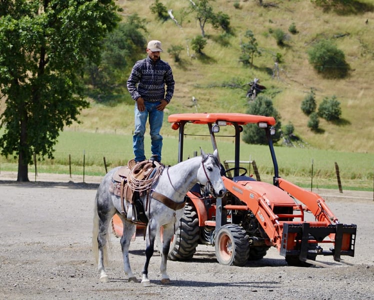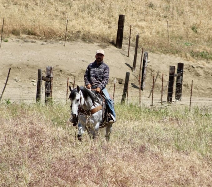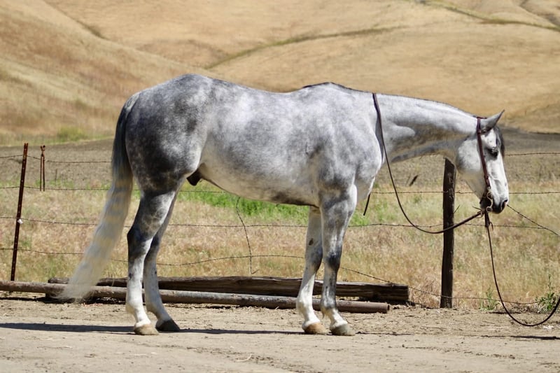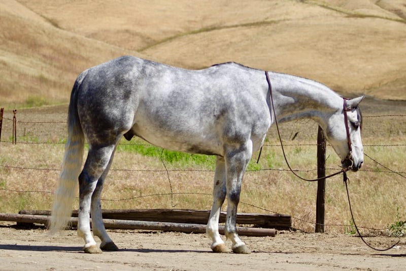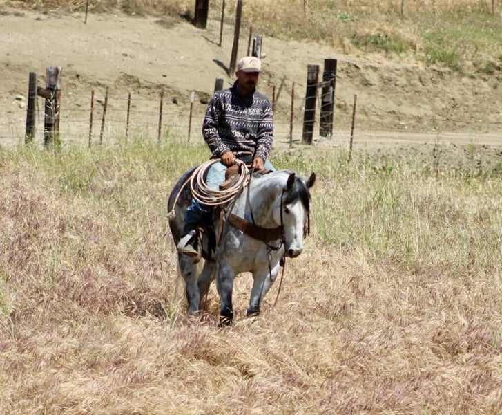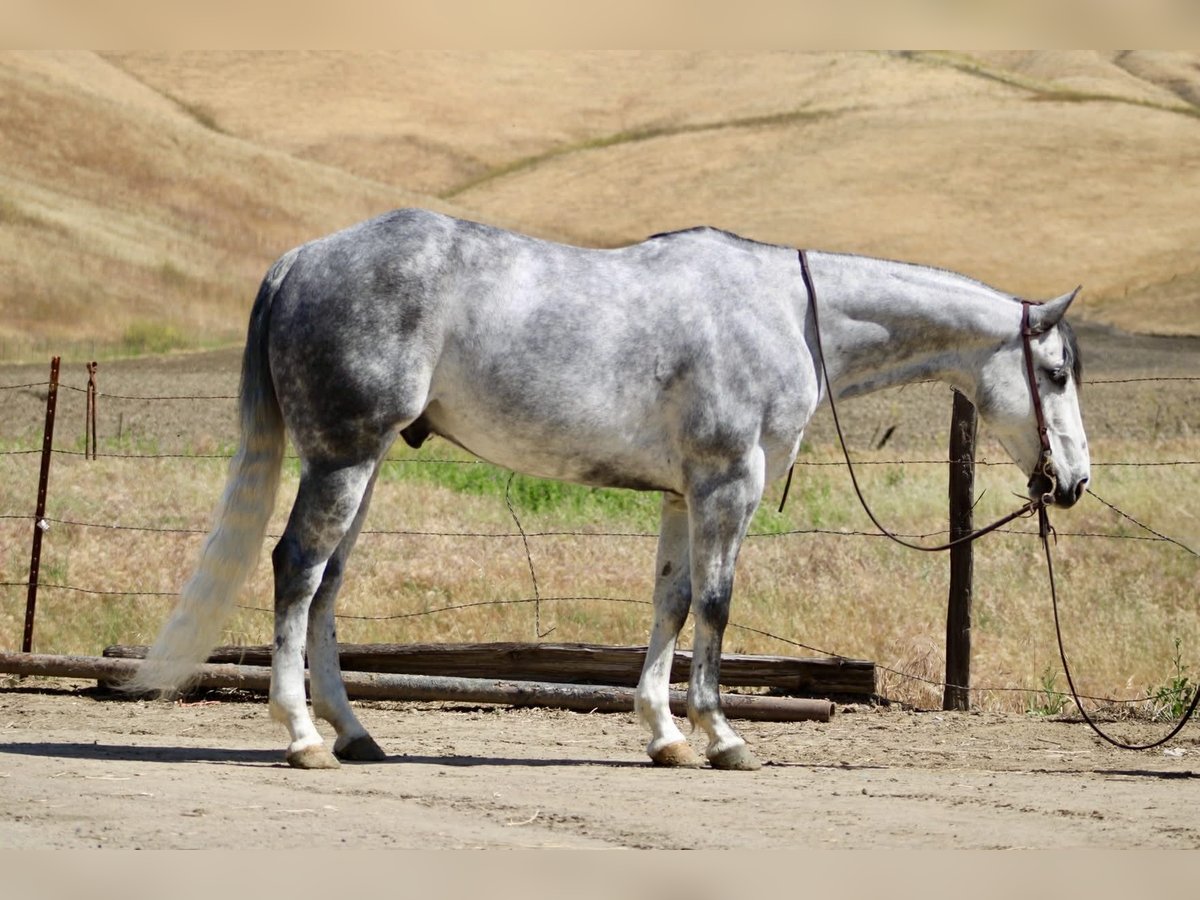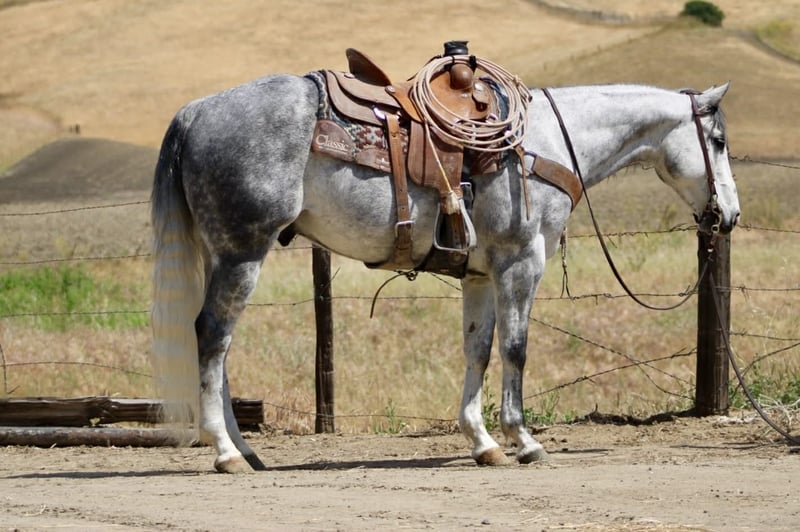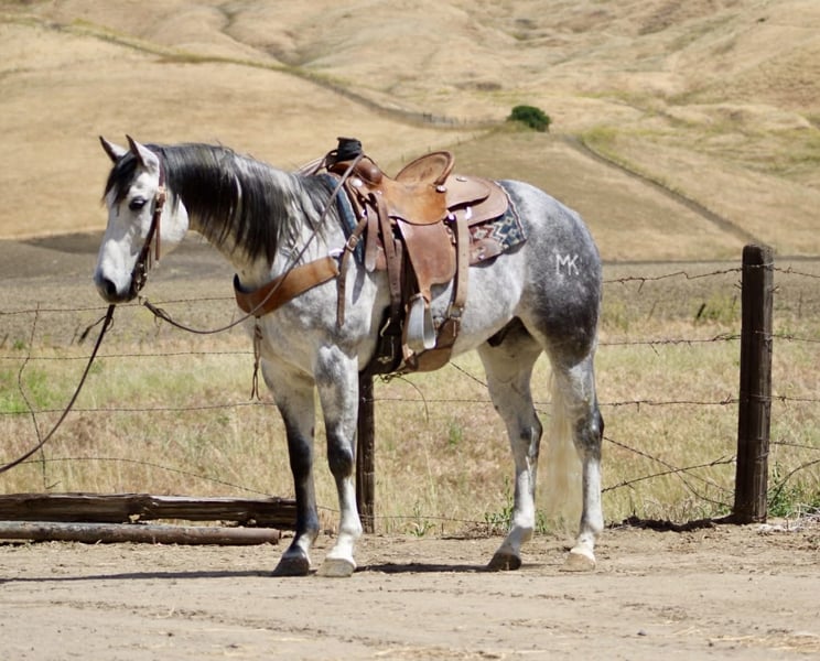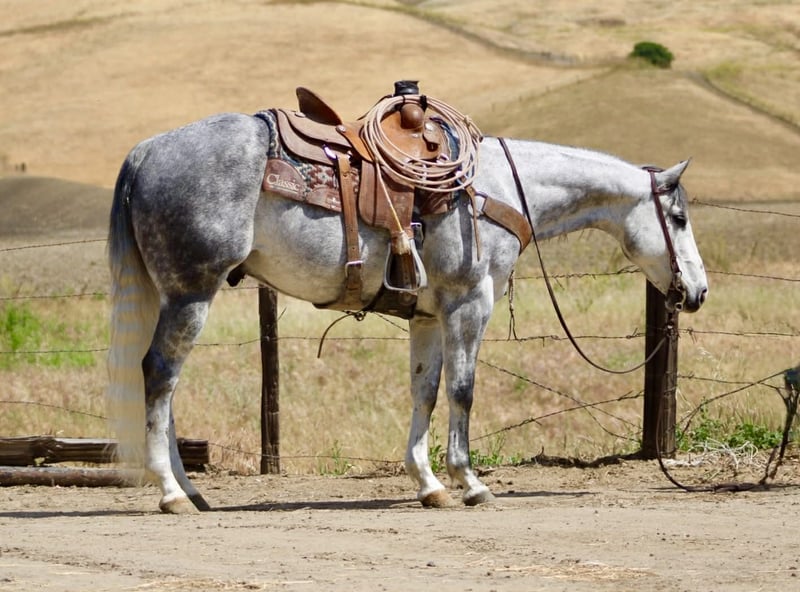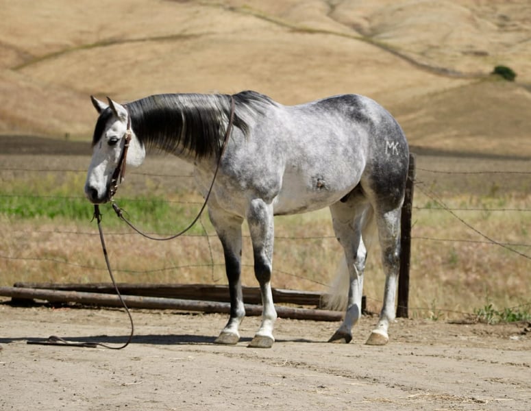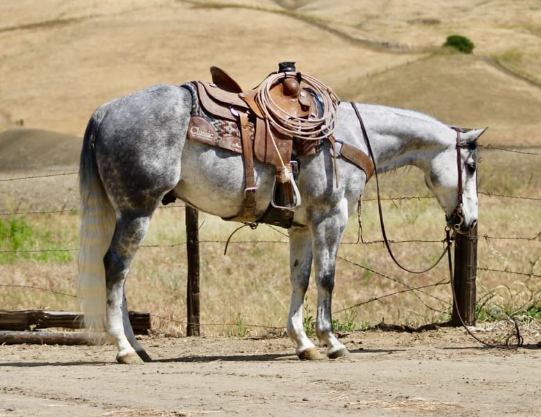 "AVAILABLE ON ONLINE HORSE AUCTION AT www DOT PlatinumEquineAuction DOT com BIDDING OPEN NOW thru SUNDAY | MAY 3RD! *Final price will be determined on auction site* CONSIGNOR CONTACT INFO: Longhorn Ranch 831-537-1915 LOCATION: Paicines, CA AQUA 8-Year-Old Dapple Grey Gelding • 15 Hands Aqua is the kind of gelding that’s been ridden with a purpose. Standing a solid 15 hands, this dapple grey is put together right with bone and shape, with a look that holds up anywhere—but it’s not just appearance. He’s a horse that’s been used, seasoned, and understands his job. He rides the way a good one should. Soft in the bridle, smooth through his transitions, and naturally balanced. He picks up both leads without effort, stays quiet in your hands, and carries himself with a steady, consistent feel. His stop is correct, his turnaround is clean, and he backs without resistance. Nothing overdone—just honest every time you ride him. Where Aqua really stands out is outside. He’s a true go-anywhere gelding. Hills, rocks, brush, and water crossings are all part of his routine. He travels carefully and stays sure-footed, and keeps his rider in a good position from start to finish. He’s been through obstacles and meets them the same way every time—quiet, willing, and confident Bridges, tarps, flags, logs—he doesn’t overthink it or make it a big deal. He walks up, handles it, and goes on. He’s been hauled and ridden in different places and stays consistent. No change in demeanor, no adjustment needed—he goes to work wherever you take him. He’s been used on the ranch and is good around cattle, and really stands out for how steady and dependable he is outside the arena. On the ground, Aqua is easy to have around. He’s good to catch, stands tied, saddles up without issue, and is well-mannered for the farrier and vet. He hauls quietly and settles in without fuss. This is a gelding for someone who values one that’s been seasoned, stays consistent, and handles whatever you ask of him without making it complicated. Aqua is one you can count on. Longhorn Ranch Dina • 831-537-1915 Paicines ca Shipping available nationwide with reputable haulers. We welcome in-person visits or video calls to go over him in detail.