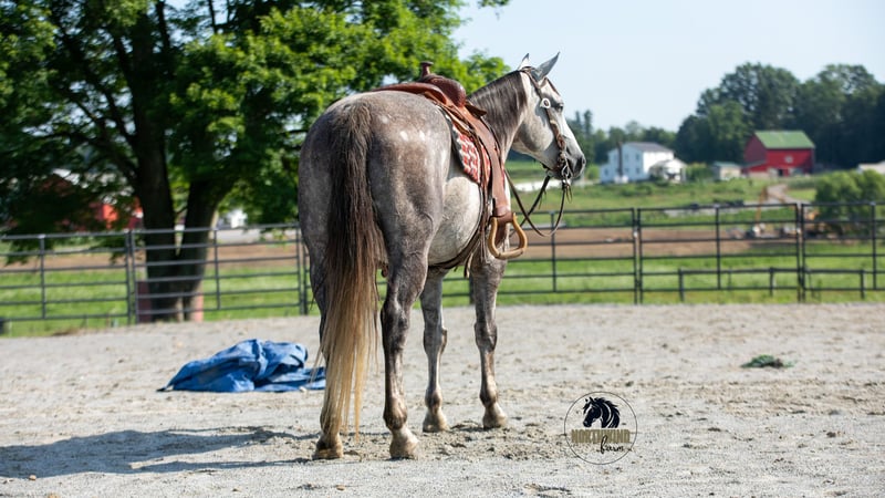🎄𝐓𝐇𝐄 𝑯𝒐𝒍𝒊𝒅𝒂𝒚 𝐂𝐋𝐀𝐒𝐒𝐈𝐂🎄 Happening now thru MONDAY | DECEMBER 15th - Available EXCLUSIVELY on HorseBid's website! For more details and to register visit: www.Horsebid.com CONSIGNOR CONTACT: North Wind Farm 330-473-3521 LOCATION: Fredericksburg OH BREED: Quarter horse REGISTERED: No REGISTERED NAME: Denver COLOR: Gray HEIGHT: 15 AGE: 7 GENDER: Gelding Denver is a 7 yr old grade quarter horse gelding standing at 15 hh! He is a gorgeous dapple gray, with the sweetest personality! He is a dream to ride! He has the smoothest trot and canter! His walk, is easy and slow making him a great trail horse! He is very forgiving, and a great horse for all levels of riders! He is safe and dependable! Denver moves nicely and listens to cues well! He can be rode bareback, western, and even bridleless! He is as honest as the day is long and the same horse everytime you take him on a ride! We have taken Denver to state parks on rides and have rode him all over our farm! He does great at new places and takes everything in stride! He will cross creeks, steps over logs, and doesn’t mind the steep hills! He will cross bridges, the tires, and he will walk through the tarps and noodles! He doesn’t mind the ball and is used to being around dogs as well! Denver is a great swimming buddy and doesn’t mind being the diving board! He is used to being in chaotic situations and handles new stuff very well! He is an all around sweet gelding and so fun to ride! Denver also rides very well in the arena, he will pick up both leads, he stops, and backs up! He can be rode on a lose rein and moves off of leg pressure and neck rein or he will collect up and moves off of direct rein as well! He is a very smart guy and adapts well to new riders! We have rode Denver in the arena and all over our farm trails too! Denver is one of the sweetest geldings you will meet! Contact us for more info or to schedule to meet Denver!