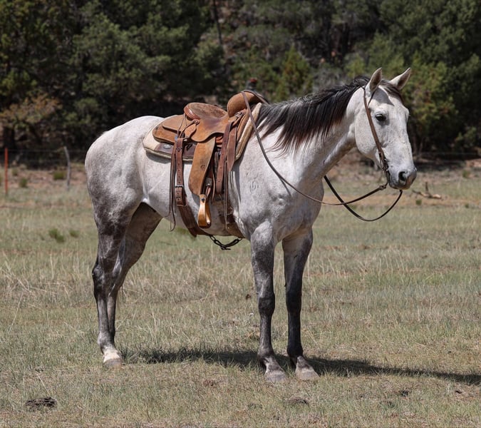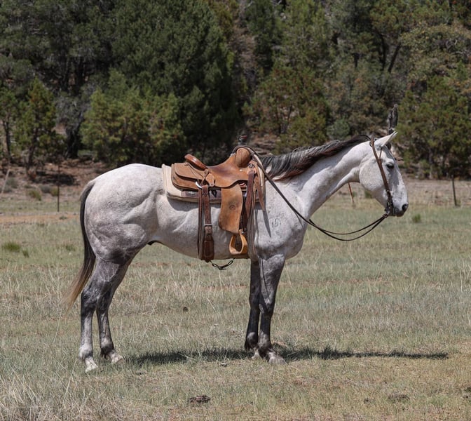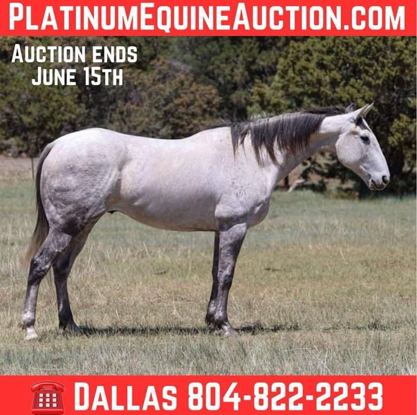 ONLINE AUCTION Place your bids at www.PlatinumEquineAuction.com Starting Bid $3500 Auction ends June 15th, 2025 Need a new saddle? Check out White Rock Saddles on our website or Facebook! Coach is a 7 year old grade gelding standing 15hh, and absolutely in your pocket! Whether he’s in a stall or turned out in a big pasture Coach will meet you at the gate eager to adventure! Coach has been used on various different ranches across Arizona and New Mexico in a variety of terrain, making him surefooted and well rounded on the trail. Rough rocky terrain, steep slippery slopes, thick brush, flowing water, speeding traffic. He’ll trek through it all! Coach is not only great to ride outside, he’s a blast in the arena as well! He will walk, trot, and lope both ways easily picking up both his leads, has a great neck rein and stop, and will back up super soft. Whether you’re looking for your next using horse to go do a long days work or an eager trail partner Coach is your man! He is easy to catch and good to groom, saddle, bridle, bathe, shoe and load. Will come with a clean coggins and health! Hauling can easily be arranged anywhere in the US!! Located in Camp Verde, AZ. Contact D/C Equine Services Dallas 804-822-2233 with any questions. ONLINE AUCTION Place your bids at www.PlatinumEquineAuction.com Starting Bid $3500 Auction ends June 15th, 2025 Need a new saddle? Check out White Rock Saddles on our website or Facebook!