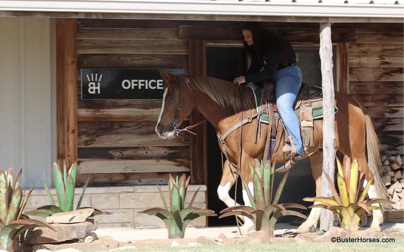 ONLINE AUCTION Place your bids at www.PlatinumEquineAuction.com Starting Bid $3500 Auction ends November 24th, 2024 Need a new saddle? Check out White Rock Saddles on our website or Facebook! Champ is 6 years old and 15.1hh just the right age, just the right size – and has the loud flashy markings that everyone’s looking for! He is extremely smooth gaited and uncomplicated to ride, but still fun! He has a nice handle, a big stop, and travels really cute too! He would be fun to take to the local hunter/jumper shows, or the entry level dressage tests. He trail rides great, he absolutely loves going into town and being around lots of traffic and commotions and things to see! He has been tons of miles checking fences and checking cattle, and he is very comfortable out alone as well as in a group of horses. He’s even been used in the cutting pen, as a turn back horse at a cutting facility, and he was the resident “non-rider” mount. Anyone can get along with this sweet guy he has a ton of personality and he’s always the first one up to you in the pen. He loves attention and if he’s out in the pasture with a group of horses he’ll come up to you versus hanging out with the horses he loves scratches loves cookies and loves attention. He is great in the barn, stands tied quietly, he is easy to saddle and bridle, stands flat-footed and still for mount and dismount, he hops right on the trailer, and hauls quietly too. Champ was just shod this week, his teeth were also done by an equine dentist earlier this year, at that time he also had his ears preemptively treated for ticks, and he was also power pack wormed. He will arrive at her new home up-to-date and ready to go to work! Please call anytime for more information at 214-605-7174 Champ is located in Weatherford, TX – one hour from Dallas / Fort Worth International Airport. He is an easy day trip or fun overnight trip to come try out, from anywhere! We are experienced knowledgeable sellers and we can help with quickly arranging affordable shipping to any buyer’s location – we have experience shipping horses worldwide – including regularly to Hawaii, Canada, Mexico, Europe, and South Africa. Go to our Facebook page Buster Ranch and check our website for buyer reviews. ONLINE AUCTION Place your bids at www.PlatinumEquineAuction.com Starting Bid $3500 Auction ends November 24th, 2024 Need a new saddle? Check out White Rock Saddles on our website or Facebook!