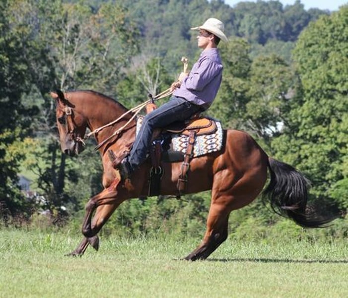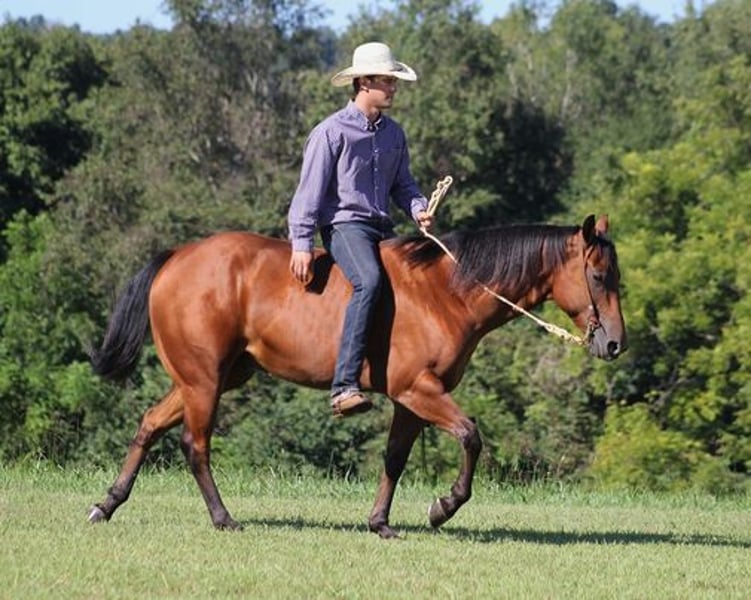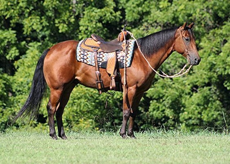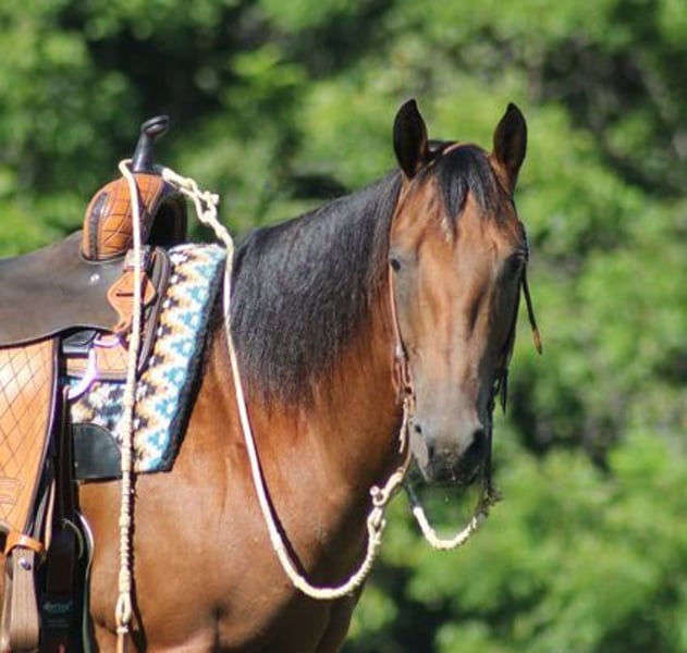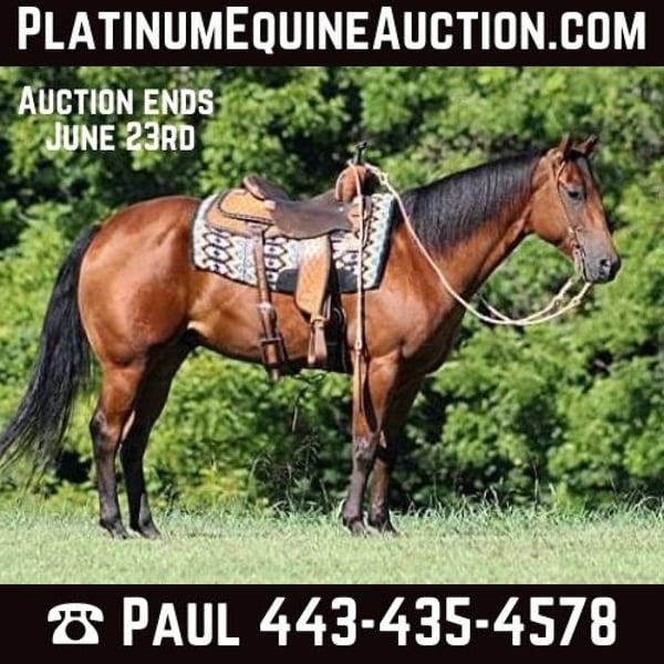 ONLINE AUCTION Place your bids at www.PlatinumEquineAuction.com Starting Bid $3500 Auction ends June 23rd, 2024 Need a new saddle? Check out White Rock Saddles on our website or Facebook! Blondy Doc Hickory is a big super stout built 15-15.1hh, 5 year old, Bay Registered Quarter Horse Gelding. Hickory is a well traveled horse that has been ridden in several states and has been used as a ranch horse in every aspect of ranch life. From herding to sorting, pasture roping and doctoring, Hickory is stout enough to pull anything that you can throw a rope on! He has been trail ridden in several states and used at the stockyards to pen cattle on a few occasions. He will cross creeks, ditches, logs and navigate rough rocky areas. Hickory is safe riding in traffic. He has a smooth jog, a nice lope, will slide stop, turns a circle both ways, sidepasses and backs with ease! Hickory has been exposed to all kinds of wildlife such as deer or turkey or other animals like cows or dogs and will go anywhere that he is asked too. He has been rode many miles in the mountains of Eastern Kentucky and encountered every obstacle possible on the trail. He will go up or down even the steepest slopes, across deep creeks, over downed trees, and over all types of rough terrain while still being sure footed. If you want to feel and look like a real deal cowboy/cowgirl just climb on Hickory and he will make you look like one! If you have any questions call Paul Dandro 443-435-4578. Located in New Park, PA. ONLINE AUCTION Place your bids at www.PlatinumEquineAuction.com Starting Bid $3500 Auction ends June 23rd, 2024 Need a new saddle? Check out White Rock Saddles on our website or Facebook!