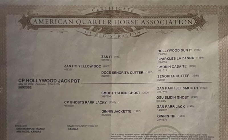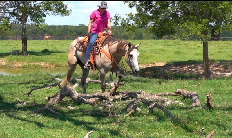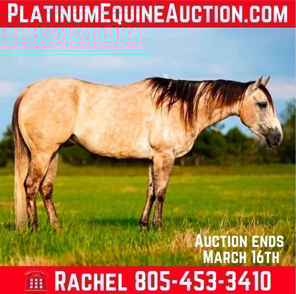 ONLINE AUCTION Place your bids at www.PlatinumEquineAuction.com Starting Bid $3500 Auction ends March 16th, 2025 Need a new saddle? Check out White Rock Saddles on our website or Facebook! CP Hollywood Jackpot aka Hollywood is one you do not want to miss! The definition of Gentle and Gorgeous! He stands at 15.1 hands tall has a pretty gray color, long mane and tail make you feel like he’s been pulled right out of a fairytale book. Hollywood makes a statement everywhere he goes! Not only is he stunning, but he checks all the other boxes too! Hollywood is super easy going and wants to always be a good boy, He also has some cool tricks up his sleeve like laying down when asked! Hollywood is the first horse to meet you at the gate to be caught and stands completely still while you put the halter on. He loves any attention he can get. This gelding is everyone’s favorite out here at the barn because he is truly a dream to ride. Hollywood is great out on the ranch, He is naturally cowy and good in the sorting pens and gathering cattle out of big pastures. He ties good, side passes to all the gates and can pull a semi truck if you roped it. Hollywood is a trooper out on the trails and is confident alone, will lead a group, or happily trail behind. He goes where you point him and doesn’t say no. He’s accustomed to lots of wild life, crazy dogs, pigs, camels, buffalo, and cattle. Blowing tarps, loud gunfire, busy traffic, and heavy machinery do not phase him either. Hollywood will literally walk through fire for you! There isn’t anything this gelding can’t handle! This gelding loves baths and loves when all the kids around the ranch groom him & loves eating the cookies right out of their hands. Hollywood has a big personality and is a fun horse to have around the barn. Located in Post Oak Bend City, TX. Call Canyon Creek Ranch Rachel 805-453-3410 with any questions. ONLINE AUCTION Place your bids at www.PlatinumEquineAuction.com Starting Bid $3500 Auction ends March 16th, 2025 Need a new saddle? Check out White Rock Saddles on our website or Facebook!