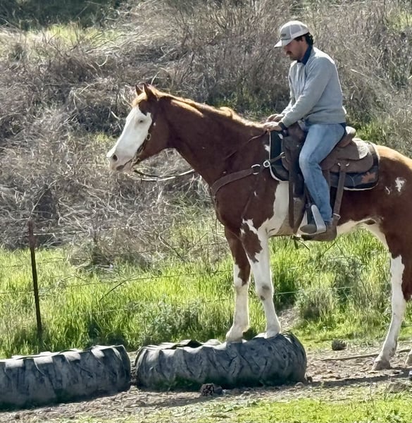 ONLINE AUCTION Place your bids at www.PlatinumEquineAuction.com Starting Bid $3500 Auction ends May 11th, 2025 Need a new saddle? Check out White Rock Saddles on our website or Facebook! Meet Big Jim, the laid-back legend of the horse world! This 7-year-old flashy paint gelding is not just a pretty face with his striking blue eyes; he’s a solid 15.1 hands of pure chill. If you’re after a horse that takes life at a leisurely pace, Big Jim is your guy. He’s all about cruising around the arena, showing off his smooth walk, trot, and lope, complete with a nice stop and a backup that would impress even the most seasoned cowboys. What’s truly remarkable about Big Jim is his easygoing nature. You could climb on him like a jungle gym, and he wouldn’t bat an eye at a waving flag, a bouncy ball, or even a tarp flapping about. He’s your trusty trail companion, ready to tackle hills, cross rushing streams, and navigate rough patches without breaking a sweat. He’s even done some cattle work checking fences and gathering. And let’s not forget his city skills! Big Jim has strutted through town like he owns the place, unfazed by honking cars or bustling crowds. He’s a dream for the farrier, doesn’t mind water, and is all current on his vaccinations. For more info or to chat about this gentle giant, reach out to Beau Mendala 831-732-9074. You won’t regret it! Located in King City, CA. ONLINE AUCTION Place your bids at www.PlatinumEquineAuction.com Starting Bid $3500 Auction ends May 11th, 2025 Need a new saddle? Check out White Rock Saddles on our website or Facebook!