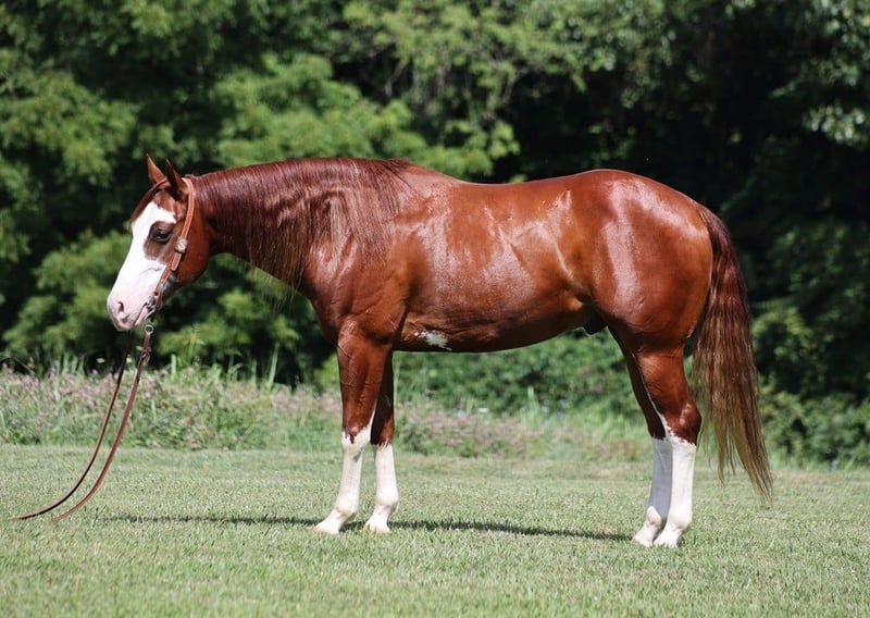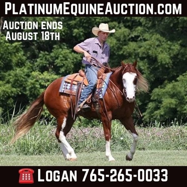 ONLINE AUCTION Place your bids at www.PlatinumEquineAuction.com Starting Bid $3500 Auction ends August 18th, 2024 Need a new saddle? Check out White Rock Saddles on our website or Facebook! All’s Lip Smacking Good aka Smack is a stout built Chestnut Overo horse standing around 15.1hh and he is a 2018 Model Registered APHA Gelding. He has an excellent pedigree going back to the famous Topsail Whiz who is an AQHA Hall Of Famer who has sired over $12 Million Dollars in offspring. The Topsail Whiz bloodline is well known throughout the reining world and also in the cowhorse world. Since owning Smack he has been used at the stockyards to pen cattle, we’ve had him out in the pasture gathering cattle and he has roped a couple as well. He has been started on the roping dummy and is doing a good job tracking it. He knows his way around the ranch and has plenty of cow sense. Smack is an excellent horse to take for a relaxing trail ride as he is great on trails and he will cross creeks, ditches, logs and navigate rough rocky areas. He has a smooth jog, a VERY VERY nice easy to set lope, a good stop, turns a circle both ways and backs with ease! Smack has had some reining training and would be an excellent horse to enter the show pen in the ranch horse classes. He rides with his head low and will keep a loose/draped rein. He has been exposed to all kinds of wildlife. He will go up or down steep slopes, across deep creeks, over downed trees, and over all types of rough terrain while still being sure footed. He has been ridden through town and is safe in traffic is not spooky. Smack is an excellent horse for any job around the ranch or trails! He is located in Level Green, KY. Feel free to call Moore Trained Horses Logan 765-265-0033 with any questions. ONLINE AUCTION Place your bids at www.PlatinumEquineAuction.com Starting Bid $3500 Auction ends August 18th, 2024 Need a new saddle? Check out White Rock Saddles on our website or Facebook!