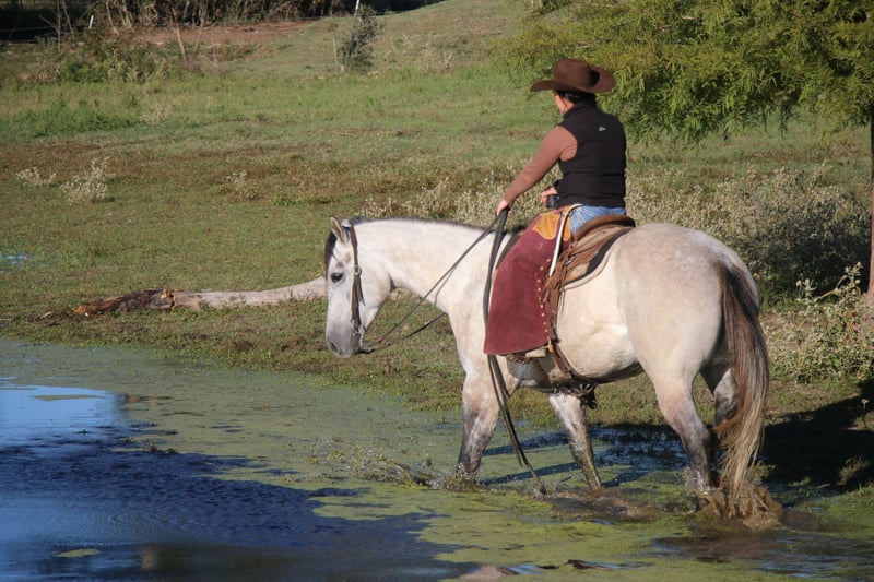 ♦️ The RIDER'S Choice ♦️ Jetzt bis MONTAG | 20. NOVEMBER - EXKLUSIV auf der HorseBid-Website verfügbar! Für weitere Details und zur Anmeldung besuchen Sie: www.HorseBid.com KONTAKT ZUM EINLIEFERER: Westbound Marketing 619-655-2272 STANDORT: Carthage, TX RASSE: QH EINGETRAGEN: Ja REGISTRIERTER NAME: Quick N Dun Right FARBE: Gray GRÖSSE: 15.2 ALTER: 5 GESCHLECHT: Wallach Wichita ist das Pferd, das dich jeden Morgen am Weidezaun begrüßt. Er ist sympathisch, freundlich und in der Tasche. Er ist daran gewöhnt, auf der Weide gehalten zu werden, und egal wie groß die Weide ist, er ist immer leicht einzufangen. Er wurde in erster Linie als Ranch- und Trailpferd eingesetzt, ist aber auch ein großartiges Hauptpferd, wenn Sie nach einem Pferd suchen, mit dem Sie in den Roping Pen gehen können. Wir sind auch der Meinung, dass er unter englischem Sattel großartig laufen würde! Er hat eine ausgedehnte, fließende Bewegung, die gut in die englische Disziplin übergehen würde. Seine Gänge sind entspannt und weich. Er ist kein schnelles Vorwärtspferd, aber er ist auch nicht super faul. Er ist eine angenehme Mischung aus beidem. Wichita ist sanftmütig, selbst in der Pause hat er nie gebockt. Er ist das, was wir als "old fashioned broke" bezeichnen. Er geht am Halszügel und reitet einhändig, wobei er zwischen den Trensenzügeln bleibt. Er geht an der Leine und dreht Kreise in beide Richtungen, geht zum Wenden über und hält sehr gut an, wenn man ihn darum bittet, ist aber nicht das, was wir als schick oder gehässig bezeichnen würden. Er ist ehrlich mit einfachen, benutzerfreundlichen Knöpfen. Wichita hat viel Erfahrung außerhalb des Reitplatzes und ist nicht leicht zu erschrecken. Er hat alle Arten von Wildtieren, Gelände und Wasserdurchquerungen gesehen, während er beim Zusammentreiben große Kreise ziehen musste. Wir haben mit ihm Rinder im Freien angeseilt, sowohl zum Verarzten als auch zum Verladen auf den Anhänger. Er läuft, wenn man ihn darum bittet, und geht genau dorthin, wo man ihn hinführt. Er zieht stark und kann gut mit einem Seil umgehen. Er war schon ein paar Mal in der Kopfbox und es wird nicht lange dauern, bis er auch als Kopfpferd gut läuft. Wichita ist sehr pflegeleicht. Er ist derzeit beschlagen, kann aber auch barfuß gehen, wenn Sie es wünschen. Er kommt in der Herde oder allein zurecht. Er hat keine besonderen Pflegeanforderungen. Er hatte noch nie größere Verletzungen oder Krankheiten und ist völlig gesund und fit. Seine Bodenmanieren sind wunderbar. Er lässt sich ruhig anbinden und anhängen und ist ein Gentleman beim Satteln und Zäumen. Wichita hat sein ganzes Leben und seine Karriere noch vor sich. Er wird ein lebenslanger Partner sein.