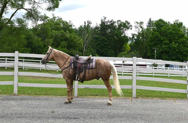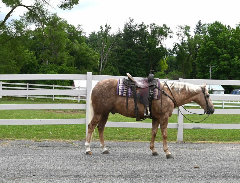ONLINE AUCTION Place your bids at www.PlatinumEquineAuction.com Starting Bid $3500 Auction ends June 16th, 2024 Need a new saddle? Check out White Rock Saddles on our website or Facebook! Meet Trigger!! He is a total dream horse that catches everyone’s eyes, no matter where you go! From his beautiful golden dappled coat, to his sweet disposition… their is nothing not to love about Trigger. He is a 14.1H, 2017 Model Registered Quarter Horse Gelding. He is broke the absolute best. Whether its english, western or bareback he does it all. He is easy to catch, saddle, bridle, groom, shoe and bathe. He has been trail ridden and knows all about rocky terrain, steep slopes, mud, crosses creeks and crosses deadfall with ease. He is safe riding down busy highways as well. Trigger will walk, trot, canter with ease. He knows his leads, leg pressure and neckreins very well. He gets along with others in the pasture and is easy to catch. Trigger is an absolute family horse type, he is gentle and quiet but if you need to get up and go he can move out as well but always calms down just as soon as he is asked. He is up to date on coggins, rabies vac and worming. He sells sound! If you have any questions contact Silverstar Stables Norman 319-284-0001 Located in Sturgis, MI. ONLINE AUCTION Place your bids at www.PlatinumEquineAuction.com Starting Bid $3500 Auction ends June 16th, 2024 Need a new saddle? Check out White Rock Saddles on our website or Facebook!