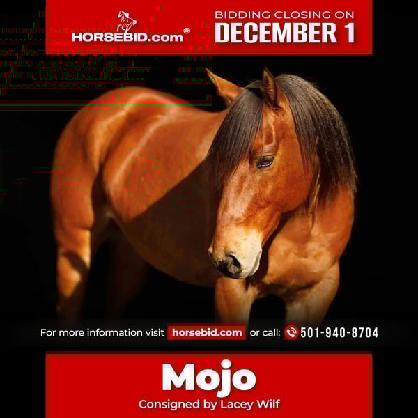 ⚜️ 𝓽𝓱𝓮 𝐇𝐨𝐫𝐬𝐞𝐦𝐚𝐧'𝐬 𝓢𝓱𝓸𝔀𝓬𝓪𝓼𝓮⚜️ Happening now thru MONDAY | DECEMBER 1st - Available EXCLUSIVELY on HorseBid's website! For more details and to register visit: www.Horsebid.com CONSIGNOR CONTACT: Lacey Wilf 501-940-8704 LOCATION: Quitman AR BREED: Quarter Horse REGISTERED: Yes REGISTERED NAME: ZANS TWO ID HICKORY COLOR: Bay HEIGHT: 14.2 AGE: 8 GENDER: Gelding Mojo is a 2017 model bay gelding with a heart as soft as his eye and a disposition you’ll fall for instantly. Standing 14.2 and built like a tank, he’s compact, sturdy, and carries the kind of shape and substance everyone appreciates in a using gelding. He’s the kind that greets you with quiet confidence, stands patiently for whatever you need, and carries a naturally kind, agreeable presence that makes him an easy favorite in any barn. Out on the trail, Mojo is as steady as they come. He moves through water, timber, and uneven country with a sure, thoughtful step, never rushing and never questioning where he’s pointed. Busy roads, passing vehicles, barking dogs, or farm machinery don’t bother him in the slightest—he takes the world in with a level, relaxed mindset that keeps every ride comfortable and predictable. Whether he’s leading the group or cruising along at the back, Mojo stays the same: honest, composed, and dependable. In the arena, he offers a smooth, uncomplicated ride with a naturally balanced way of traveling. He stays soft in the bridle, easy between the reins, and carries himself with a quiet willingness that suits riders who appreciate a horse that makes things simple. He’s responsive without being reactive, and forward without ever feeling hot—a rare combination that makes him truly enjoyable. Mojo has also gained real, practical experience at the stockyards—comfortable sorting, moving cattle, and working alleys with a quiet mind. He handles pressure and movement with maturity, staying tuned in without getting worked up. His ground manners are exactly what you’d hope for in a gelding of his caliber. Mojo is polite to saddle, stands well for the farrier, leads with respect, and loads and hauls with no issue. He pastures well with others—no drama, no trouble—and he transitions effortlessly into new surroundings. His pedigree shows exactly why he’s built the way he is—carrying the consistent minds and using-horse qualities of Zan Par Jinx, Rich Holly Jinx, and Doc’s Hickory bloodlines. That heritage shows through in his softness, trainability, and steady work ethic. If your program could use a sweet-natured, dependable gelding with real-world experience and a personality that makes every day better, Mojo brings all of that—and more—to the table.