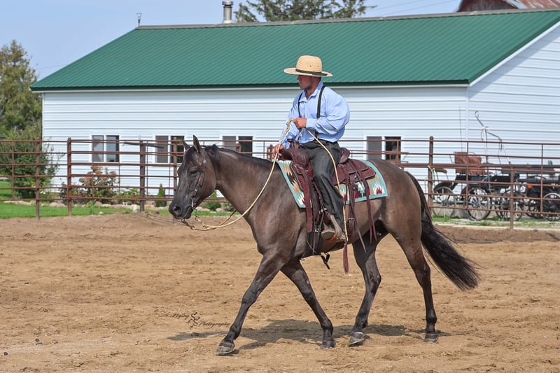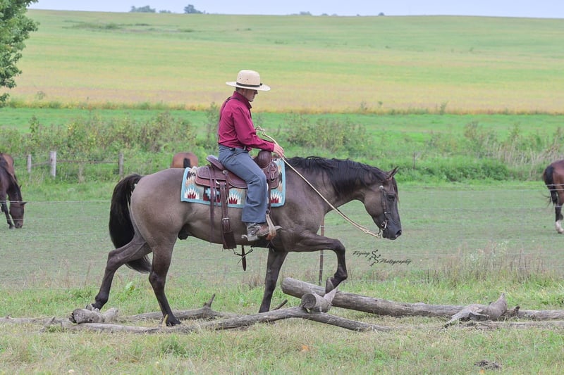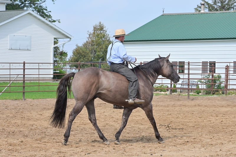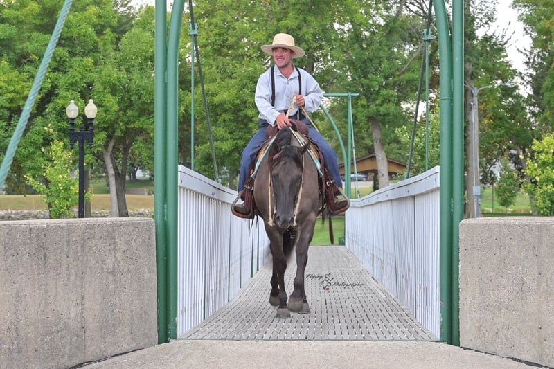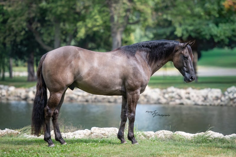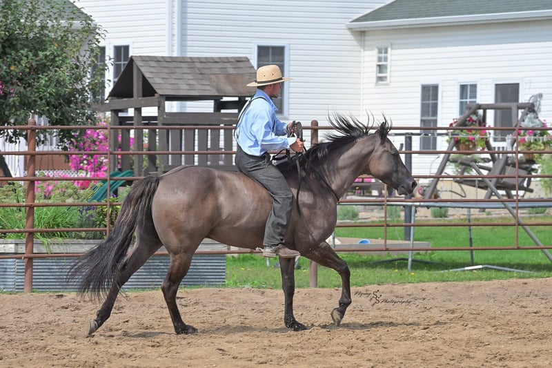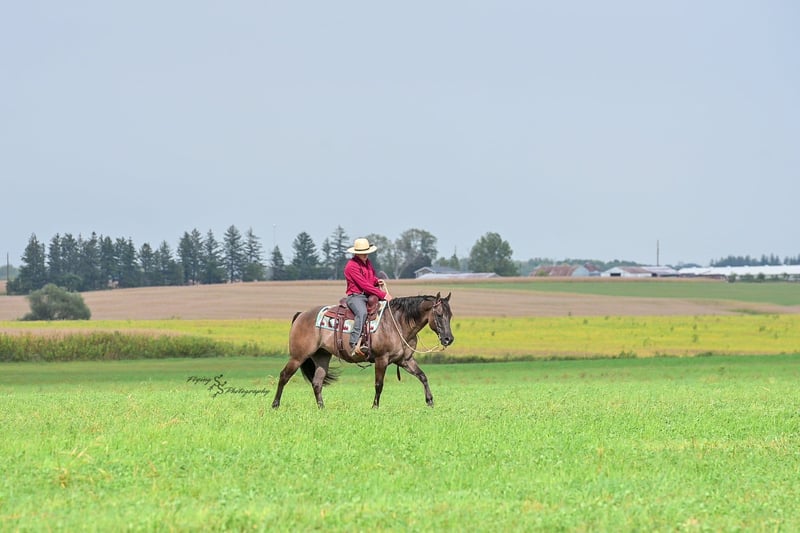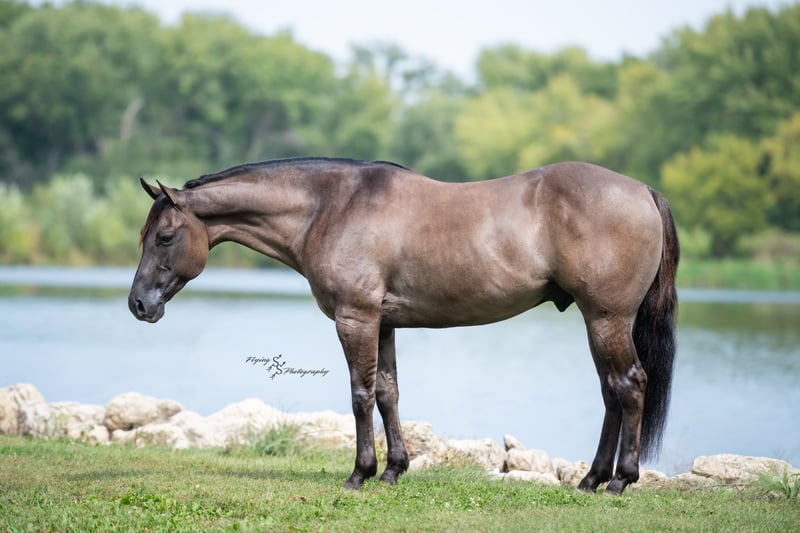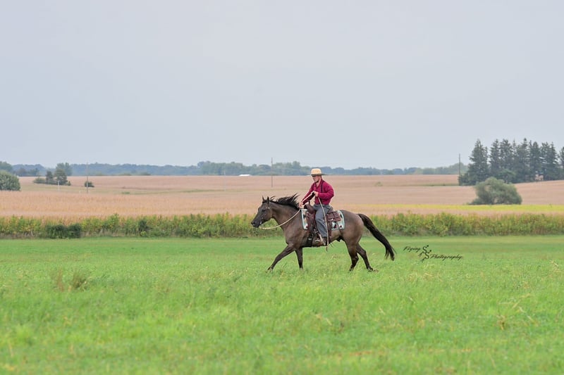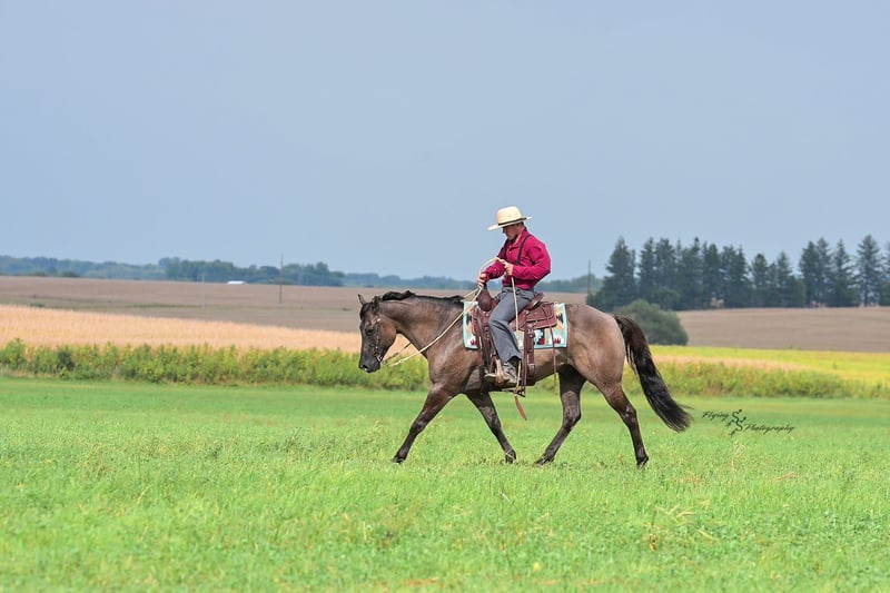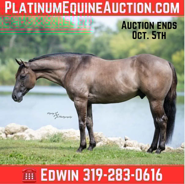 ONLINE AUCTION Place your bids at www.PlatinumEquineAuction.com Starting Bid $3500 Auction ends October 5th, 2025 Need a new saddle? Check out White Rock Saddles on our website or Facebook Ladies and Gentleman, feast your eyes on a stunner that will turn heads and steal hearts with just a glimpse. “A Nickle Fritz” is a reg AQHA Gelding who is a 2017 model, classy looking Grulla color standing 14.3hh. Fritz checks many boxes for those of you searching for a family, trail, or a ranch show horse. At 8 years old, he has years of experience under his belt, giving you the same honesty and maturity in every ride, no matter how much time he is given off. Fritz is suitable for almost any level or age rider. Any adult or experienced child will get along wonderfully with him, we recommend a beginner child to be in a controlled environment with supervision when riding him as we have not personally turned the kids loose with him. Fritz would make a phenomenal addition for anyone who would like to show in the ranch horse classes. He is experienced on the trails; whether riding through open plains or through thick timber. He will cross ditches, water, downed timber, and do it all with a graceful ease. Whether you ride him at the lead, middle or end of the group, Fritz will ride quietly. He also rides out alone without any fuss. Fritz is accustomed to riding down busy highways, and through the mainstreets of our small town. He is not bothered by traffic or pedestrians, he is even used to the horseplay you’ll find around jungle gyms at the park. One thing that I absolutely love about Fritz is how agile he is; you can see that he puts thought into the placement of each foot and is totally aware of his body position. Fritz has a lovely extended trot, smooth transitions, a true one hand neck rein, and an easy stop. He will lope beautiful, even circles; picking up his leads correctly on cue with a smooth departure. Fritz will side pass, open and close gates, and has a very correct turn around. He will ride bareback and even ride bridleless – whether you are in the arena, on mainstreet, or out in the wide open fields. Fritz has been hauled a lot and has seen the sights, helping him to be seasoned and comfortable away from home. He loads and trailers with ease. Fritz is wonderful for the farrier, and stands perfectly to be shoed. He is easy to bathe as well. Fritz is comfortable whether he is stalled or turned out in the pasture, and gets along well with pasture mates. Included in his paper work is a 5 panel genetic test result, all of which are negative (5 panel n/n). Fritz is a true pleasure to be around, and I know you will enjoy him as much as I have. If you have any questions, or would like to meet Fritz prior to the auction ending, please call Edwin at 319-283-0616. ONLINE AUCTION Place your bids at www.PlatinumEquineAuction.com Starting Bid $3500 Auction ends October 5th, 2025 Need a new saddle? Check out White Rock Saddles on our website or Facebook