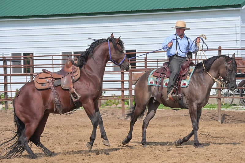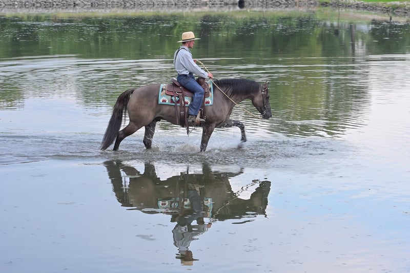 ONLINE-AUKTION Geben Sie Ihre Gebote ab unter www.PlatinumEquineAuction.com Startgebot 3500 $ Die Auktion endet am 5. Oktober 2025 Brauchen Sie einen neuen Sattel? Schauen Sie sich White Rock Saddles auf unserer Website oder Facebook an. Meine Damen und Herren, erfreuen Sie sich an einem Blickfang, der Köpfe drehen und Herzen stehlen wird. „A Nickle Fritz“ ist ein registrierter AQHA Wallach, Jahrgang 2017, in der eleganten Farbe Grulla und steht 14,3 hh (ca. 1,50 m). Fritz erfüllt viele Kriterien für diejenigen, die nach einem Familien-, Trail- oder Ranch-Showpferd suchen. Mit 8 Jahren hat er bereits jahrelange Erfahrung, was Ihnen bei jedem Ritt Ehrlichkeit und Reife bietet, unabhängig davon, wie viel Zeit er frei hatte. Fritz ist für nahezu jedes Niveau oder Alter des Reiters geeignet. Jeder Erwachsene oder erfahrene Kind wird wunderbar mit ihm zurechtkommen; wir empfehlen, dass ein Anfänger-Kind in einer kontrollierten Umgebung mit Aufsicht reitet, da wir persönlich die Kinder nicht unbeaufsichtigt mit ihm gelassen haben. Fritz wäre eine phänomenale Ergänzung für jeden, der in den Ranch-Pferdeklassen zeigen möchte. Er hat Erfahrung auf Trails, egal ob beim Reiten durch offene Ebenen oder durch dichten Wald. Er überquert Gräben, Wasser, umgefallenes Holz und macht das alles mit anmutiger Leichtigkeit. Egal, ob Sie ihn an der Spitze, in der Mitte oder am Ende der Gruppe reiten, Fritz wird ruhig reiten. Er reitet auch alleine ohne Probleme. Fritz ist es gewohnt, auf vielbefahrenen Straßen und durch die Hauptstraßen unserer kleinen Stadt zu reiten. Er wird nicht von Verkehr oder Fußgängern gestört und ist sogar an das Pferdespiel gewöhnt, das Sie rund um die Spielplätze im Park finden. Eine Sache, die ich an Fritz absolut liebe, ist seine Beweglichkeit; man sieht, dass er darüber nachdenkt, wo er jeden Fuß platziert, und sich seiner Körperposition völlig bewusst ist. Fritz hat einen schönen, verlängerten Trab, sanfte Übergänge, eine echte Einhand-Nackenlenkung und einen einfachen Halt. Er wird schöne, gleichmäßige Kreise im Galopp reiten; er nimmt seine Führungen korrekt auf Signal mit einem sanften Abgang. Fritz kann seitwärts gehen, Tore öffnen und schließen und hat eine sehr korrekte Wende. Er kann auch ohne Sattel und sogar ohne Zügel geritten werden – egal, ob Sie in der Arena, auf der Hauptstraße oder in den weiten Feldern sind. Fritz wurde viel transportiert und hat viele Sehenswürdigkeiten gesehen, was ihm hilft, erfahren und komfortabel außerhalb des Hauses zu sein. Er lädt sich leicht und fährt gut im Anhänger. Fritz ist wunderbar für den Hufschmied und steht perfekt zum Beschlagen. Er lässt sich auch leicht baden. Fritz ist sowohl im Stall als auch auf der Weide bequem und versteht sich gut mit seinen Weidekameraden. In seinen Unterlagen sind die Ergebnisse eines 5-Panel-Gentests enthalten, die alle negativ sind (5-Panel n/n). Fritz ist ein wahrer Genuss, in seiner Nähe zu sein, und ich weiß, dass Sie ihn genauso genießen werden wie ich. Wenn Sie Fragen haben oder Fritz vor dem Ende der Auktion kennenlernen möchten, rufen Sie bitte Edwin unter 319-283-0616 an. ONLINE-AUKTION Geben Sie Ihre Gebote ab unter www.PlatinumEquineAuction.com Startgebot 3500 $ Die Auktion endet am 5. Oktober 2025 Brauchen Sie einen neuen Sattel? Schauen Sie sich White Rock Saddles auf unserer Website oder Facebook an.