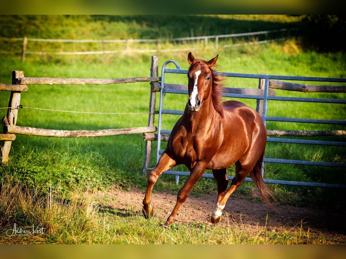 GNR Rooster Cielos, geboren im April 2017, ist ein bildhübscher Quarter Horse Wallach in der Farbe Sorrel mit einem Stockmaß von ca. 150 cm. Er ist korrekt gebaut, kompakt und überzeugt durch seine erstklassige Reining-Abstammung sowie seine solide Ausbildung. Cielo verfügt über einen ausgesprochen freundlichen und menschenbezogenen Charakter. Herdenverträglich, sozial und unkompliziert, zeigt er sich sowohl in gemischten Herden als auch in Box mit Paddock oder auf der Weide äußerst verträglich. Im Umgang ist er sehr lieb, ruhig, umgänglich und hat keine Unarten. Der Wallach ist beschlagen, regelmäßig geimpft und entwurmt. Unter dem Sattel ist GNR Rooster Cielos bequem zu sitzen, lernwillig und talentiert. Reining-Manöver wie Stop, Spin und Rollback beherrscht er sicher, der fliegende Galoppwechsel wird bereits geübt. Im Gelände ist er jederzeit ruhig und zuverlässig, erste Erfahrungen am Rind hat er ebenfalls brav gemeistert. Auf Turnieren wurde Cielo bereits erfolgreich platziert. Gelegentlich zeigt er im Galopp leichte Sensibilität bei zu viel Druck, reagiert dann mit einigen schnelleren Vorwärtsschritten, bleibt jedoch jederzeit kontrollierbar und geht nicht durch. Aufgrund dessen ist der Wallach kein Anfängerpferd, sondern ideal für erfahrene Reiter, die seine Talente gezielt fördern möchten. GNR Rooster Cielos befand sich zwei Jahre im professionellen Beritt und ist bestens ausgebildet. Leider wurde er in den letzten Monaten aufgrund von Zeitmangel wenig geritten und müsste wieder antrainiert werden. Ein leichter Spat hinten links ist vorhanden; Röntgenbilder können auf Wunsch angefordert werden. Er läuft sich nach kurzer Zeit ein. Für einen engagierten Reiter, der sich nicht von dieser Diagnose abschrecken lässt, ist er ein absolutes Highlight mit Potenzial.