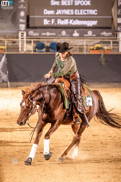 FRQ Best Electric Best Spook x Jaynes Electric Born May 9, 2017 For my beautiful gelding, FRQ Best Electric, I am looking for a suitable new home. “Spucki” has been part of my life since his foal days, so this decision is very difficult for me. It is especially important to me that he finds a person where he truly belongs. He has never been ill, is completely sound, and has a real character with lots of charm. Spucki is solidly trained in reining, but he is not marketed as a reining sporthorse. His strengths and interests lie more in other disciplines. He particularly enjoys pole work. Due to his large frame, I can also very well imagine him in horsemanship, trail riding, or as a versatile leisure partner. He goes calmly both alone and in groups in the terrain. At competitions, he has always been straightforward and relaxed. He also makes a very good impression handling small children, for example in lead-rein classes. Spucki is familiar with both paddock and open stall, is very social, and open to humans. He has been tested with MiM, showing no symptoms. As a precaution, he is fed accordingly and receives a grain- and alfalfa-free diet. In the cold season, he is also blanketed. These measures are purely preventative and have proven very effective. With a fair, confident rider by his side, he is a dream partner. I am specifically looking for the perfect match for him. Therefore, place before price. Price negotiable, €17,500 Further information gladly upon request.