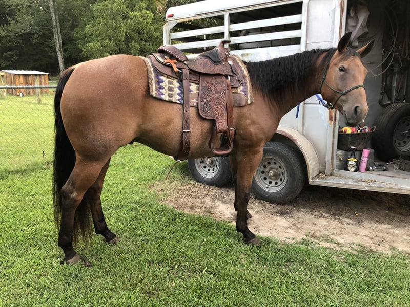 ⭐️LONSUN RUSTYREDSUGAR⭐️ 2017 Bay Roan Quarter Horse Gelding Just over 15.1 hands ‘Festus’ is the amazing all around gelding you’ve been searching for! He’s been my main all around guy for the past three years. I’ve never had one discipline I chose, I just tried everything with him. He’s done lots of arena work, as I love to work on horsemanship. We’ve been on trails, run barrels and poles, and done quite bit of heading. Although he is not trained on barrels or roping, the potential is there if you did want to take him that route. I’ve hauled him to many different arenas for open rides, practice ropings, and things like that, so he’s been exposed to loud arenas. Festus is a really smooth ride, and he’s super laid back, but he does have a motor if you ask him so I would not consider him to be a kid’s or beginner’s horse. He has a nice handle, and he loves to work. He isn’t easily spooked, but he’s not completely bombproof. There have been very few incidents where he has spooked, and he isn’t jumpy or flighty. Stands tied, loads and unloads, trailers no problem. Will stand for the farrier all day, no issues. At the moment he is barefoot, and does great, but he has had shoes before and goes well shod too. He’s on a trimming schedule and gets hauled to the farrier every 6-8 weeks, gets dewormed on schedule, teeth floated once a year, and also gets a chiropractic adjustment every few months. Super easy keeper, he stays on pasture in the spring and summer and gets hay in the fall and winter. Stays fat all year round. Catch him no problem, he loves attention and will come running when called, and stands quietly when you halter him. He tacks up no problem, brush him all over and he has no problem with it. He’s been exposed to dogs, cats, cows, goats, sheep, chickens, nothing could bother him. He loves kids and is extremely gentle. I’ve gone underneath him and hugged him from behind, he couldn’t care less. Zero kick, zero bite. He’s not cinchy or headshy. He stands at just over 15.1 hands. Someone could really take him to new heights- he has so much potential and the heart to do it, not to mention amazing bloodlines. Only letting him go due to life circumstances, I just don’t have the time that I think he needs to be his happiest. Serious inquiries only, more photos upon request. Happy to answer any questions you might have about him. Papers are in hand and he is registered with AQHA under my name, will fill out transfer papers when sold. The tack I have for him is also for sale. He will only go to a good home. Located just outside Mountain Home Arkansas, not far from Springfield Missouri or Memphis Tennessee.
