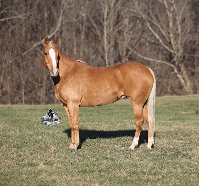 𝐀𝐝𝐚𝐦'𝐬 𝐇𝐨𝐫𝐬𝐞 & 𝐌𝐮𝐥𝐞 𝐂𝐨𝐦𝐩𝐚𝐧𝐲'𝐬 ✷𝑬𝒗𝒆𝒓𝒚 𝑴𝒊𝒍𝒆 𝑨 𝑴𝒆𝒎𝒐𝒓𝒚✷ 𝐄𝐗𝐂𝐋𝐔𝐒𝐈𝐕𝐄 𝐒𝐀𝐋𝐄 Happening now thru MONDAY | FEBRUARY 2nd - Available EXCLUSIVELY on HorseBid's website! For more details and to register visit: www.Horsebid.com CONSIGNOR CONTACT: Adams Horse and Mule Company 606-308-2461 LOCATION: Mt. Vernon, KY BREED: Quarter Horse REGISTERED: No COLOR: Palomino HEIGHT: 15 AGE: 9 GENDER: Gelding Amarillo is a well built golden Palomino, gelding, standing 15hh and he is 9 years old. Amarillo has been used around the ranch checking cattle and he has roped and doctored several as well. He knows all about ranch work and is prepared to help you anytime that the situation calls for it! Amarillo loves to just cruise along slow and easy down the trails and he is a horse that anyone will enjoy! He is an excellent trail horse and has been ridden in multiple states from Texas to Kentucky. He will cross creeks, ditches, logs and navigate rough rocky areas. He is safe riding in traffic. He has a smooth jog, a nice lope, has a good stop, turns a circle both ways and backs with ease! Amarillo is a confident horse on the trails and will lead the crew or head out alone with no issues! He has been exposed to all kinds of wildlife such as deer or turkey and will go anywhere that he is asked too. He has been ridden many miles in the mountains and encountered every obstacle possible on the trail. He will go up or down even the steepest slopes, across deep creeks, over downed trees, and over all types of rough terrain while still being sure footed. Amarillo is a horse that anyone would be proud to own and one that anyone will love!!! Feel free to call Eric 606-308-2461 with any questions.