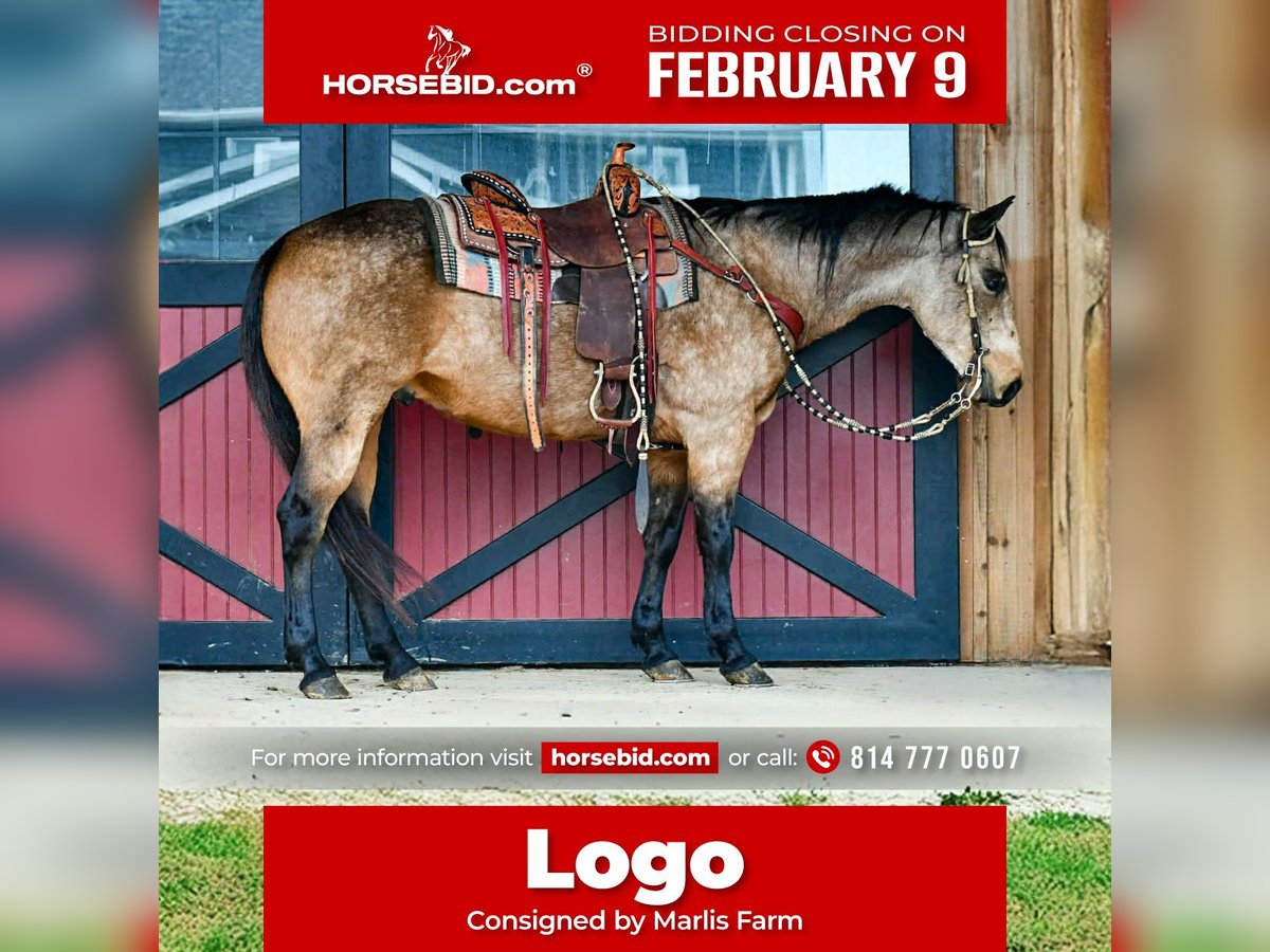 ❤️🔥𝑩𝒆 𝑴𝒊𝒏𝒆 𝐒𝐄𝐋𝐄𝐂𝐓❤️🔥 Happening now thru MONDAY | FEBRUARY 9th - Available EXCLUSIVELY on HorseBid's website! For more details and to register visit: www.Horsebid.com CONSIGNOR CONTACT: Marlis Farm 814 777 0607 LOCATION: Rebersburg, PA BREED: Quarter horse REGISTERED: No REGISTERED NAME: Logo COLOR: Buckskin HEIGHT: 15 AGE: 9 GENDER: Gelding Logo as we call him is a 9yr old 15 hand pretty buckskin quarter horse gelding, he is well broke to ride, he neckreins, sidepasses and is soft in the bridle. Logo is a finished ranch horse and a seasoned trail horse, he goes over logs, through water and wherever you point him. He has been pasture roped off of and we have not found a lot that can spook him. He also rides well in the arena, he picks up both his leads and has a good stop and turn-around. Logo is quiet to be around and loves attention. He is gentle to ride and doesnt easily get excited. We have taken Logo downtown in all the traffic and he takes it like a walk in the park. We have taken him to national parks on day rides. Logo does well inside and turned out in a mixed herd, he loads and unloads, he stands to be tacked and mounted and stands to be washed and for the farrier. He sells sane, safe and sound and ready to move into his forever home. For more information or to come meet him call Mark 814 777 0607 (call only) We can help arrange shipping anywhere!!