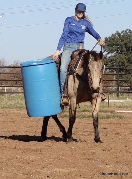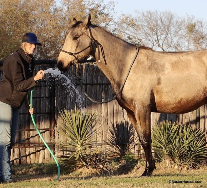 ONLINE AUCTION Place your bids at www.PlatinumEquineAuction.com Starting Bid $3500 Auction ends January 5th, 2024 Need a new saddle? Check out White Rock Saddles on our website or Facebook! Jackrabbit is a 2017 model gelding standing 15hh. He is a seasoned ranch gelding that has been all over – he’s been used on big ranches in New Mexico, Colorado, and in Texas – and he has done his job well with all different levels of riders on him. He is extremely smooth gaited and has the most tolerant kind take-care-of-you personality, he aims to please PERIOD in all situations. He has an incredibly solid, mature-beyond-his-years disposition. He is an own son of Dun It With A Twist and he is out of an old-school Genuine Doc Peponita Pine X Watch Joe Jack bred mare. This cool gelding got his name from his ridiculous endearing little/but large, can’t-help-but-love-em ears – they are unique and adorable!! He is like an all-terrain vehicle!!! He literally can go up, over, into, and through almost anything you point him at – and he does it gracefully, willingly, and boldly while still also being careful where he puts himself and his rider. He absolutely loves going into town, he genuinely enjoys seeing everything new and meeting the people. He hops right on the trailer and has absolutely no vices or bad habits. He will ride out alone willingly and has many many miles riding out in the open alone. He is easy to mount and dismount and is extremely uncomplicated to ride. He has a nice handle on him, you can ride him anywhere with one hand and he travels comfortably at all three gaits. He easily picks up either lead, has a great stop, back up, and turn around on him. He is naturally very balanced, low headed, and relaxed. He has worked more gates than you can count and knows his job there. He has sorted in the actual sorting pens for years, and would make a great horse for the sorting or penning competitions – he’s done that job in real life, for hours and hours for several days and he knows the deal! He has also been lightly started in the roping pen and is just the right age to start hauling and seasoning for that job. He does have some speed and run when you ask him, and would make a great all-around Junior, High School, or College rodeo horse. Has a ton of natural rate and stop, and plenty of cow – would quickly make a breakaway horse as well. He is a flat, level, and cute enough mover to also be very capable of playing around at the local entry level ranch horse competitions, or go to 4-H and be competitive. A gelding this versatile, athletic, seasoned – plus kind natured, and this perfect age – plus BUCKSKIN, is not a gelding we get every week. Come check him out anytime! Jackrabbit was just recently maintained by the chiropractor, the equine dentist, and was just shod by the farrier, wormed, and he has a fresh Coggins. We can quickly and easily get travel health papers drawn up anywhere you need him to go. He will arrive to his new owner with all cares in order and ready to do whatever job you have for him. Please feel free to reach out to us to come ride and try Jackrabbit, we would love to meet you in person and show him to you. We are conveniently located only an hour from a large centrally located international airport, making coming to see him possible no matter where you live! Please check out Buster Horses / Buster Ranch our past customer reviews on Google, Facebook, and our own website. And please go to Jackrabbit’s web page for more information, pictures, and for additional videos: BusterHorses.com/Jackrabbit We are located in Weatherford, TX. Call Buster Horses Ashley 214-605-7174 with any questions. ONLINE AUCTION Place your bids at www.PlatinumEquineAuction.com Starting Bid $3500 Auction ends January 5th, 2024 Need a new saddle? Check out White Rock Saddles on our website or Facebook!