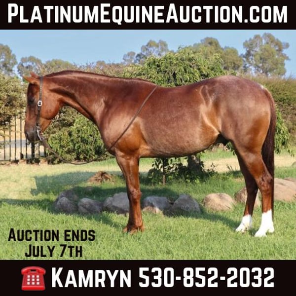 ONLINE AUCTION Place your bids at www.PlatinumEquineAuction.com Starting Bid $3500 Auction ends July 7th, 2024 Need a new saddle? Check out White Rock Saddles on our website or Facebook! Allow us to introduce Bingo Mister Peacock a 2017 model standing at 15 hands. Bingo is the absolute coolest and nicest horse you’ll ever have the pleasure of riding. Now you want a stacked pedigree and I mean the best of the best in the AQHA world with champions on it.. Look no further Bingo has Highbrow Cat which is a $90 Million Dollar sire. Mr Gun Smoke who is in the NCHA Hall of Fame. Mister Dual Pep he is a Million dollar sire as well and plenty more others on there as well. He’s the definition of BROKE, blending the sophistication of a show horse with the reliability of a trail horse. Bingo is, without a doubt, one of the finest horses I’ve ever had the joy of owning and riding. He was owned, bred,and started all by the famous Smoky Pritchett a NCHA legend. Bingo has grown up in a prestigious show barn, and his training and performance reflect that high standard. He is a standout in the arena, offering smooth transitions that make every ride a pleasure. His ability to pack his head low and collect with ease is simply impeccable, showcasing his advanced training and responsiveness. Bingo’s spin is as quick and precise as a top, and his slide stops are thrilling to experience, demonstrating his refined reining skills. He is a pro to work the flag or cows on he could even go in the direction of sorting. Bingo was started in the direction to go towards the Snaffle Bit Futurity. Meaning he has a reining and cutting back ground. Beyond the arena, Bingo has recently embraced the role of a trail horse with remarkable ease. In just a few months, he has shown exceptional adaptability and enthusiasm for trail riding. Whether you’re navigating challenging terrains or seeking peaceful countryside rides, or cruising through town. Bingo is your perfect companion. From crossing creeks and rocky paths to handling steep hills and muddy trails, Bingo excels in all environments. He’s been used to gather cows and handles the task with ease, making him a valuable partner on any ranch. Bingo enjoys going on new adventures and is always up for exploring new trails, ensuring every ride is an enjoyable experience. Bingo’s exceptional skills are matched by his wonderful temperament. He’s calm, willing, and incredibly intelligent and talented making him easy to handle both on the ground and under saddle. He has a genuine willingness to work and learn, always aiming to make his rider happy. Bingo’s sharp mind ensures he quickly adapts to new tasks and environments. Owning Bingo means having a horse that is not only a showstopper in the arena but also a trusted companion on the trails. His unique combination of advanced training, versatile skills, and delightful personality make him a rare find. Whether you’re looking to compete at Ranch versatility shows or enjoy leisurely trail rides, Bingo is the horse that can do it all with grace and reliability. Don’t miss out on the chance to own one of the nicest and most versatile horses around. He stands to be bathed, saddled, farrier, groomed. He loads up in the trailer with ease and is always eager to jump right in. He is the first to nicker at you in the mornings and the first to want all the pets and attention. He is a very in your pocket horse who loves to be loved on. Bingo is UTD on shoes, worming, teeth, shots. For more information or to schedule a visit to meet Bingo, please contact us at KW Ranch Kamryn 530-852-2042. Come see him in Pleasant Grove, CA and see for yourself why Bingo is the perfect addition to any equestrian’s life. ONLINE AUCTION Place your bids at www.PlatinumEquineAuction.com Starting Bid $3500 Auction ends July 7th, 2024 Need a new saddle? Check out White Rock Saddles on our website or Facebook!