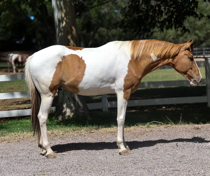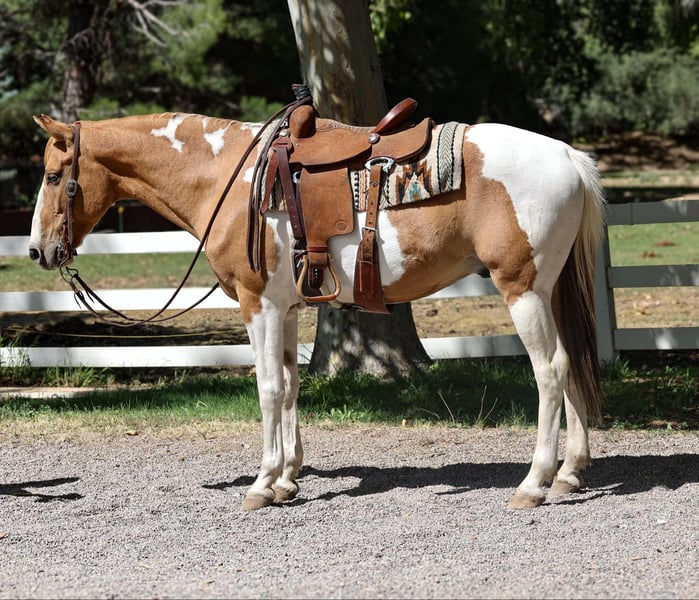 ONLINE AUCTION Place your bids at www.PlatinumEquineAuction.com Starting Bid $3500 Auction ends November 17th, 2024 Need a new saddle? Check out White Rock Saddles on our website or Facebook! Dicey is a 7 year old grade paint gelding standing 15hh. This gelding is an absolute blast to ride to matter what job you give him! Take a stroll through town, meander on down the trail, go do a solid days work around the ranch, or turn some steers in the roping pen! You name it and Dicey will do it! We have done absolutely everything you can do around a ranch on this magnificent gelding and have had all levels of riders on his back. Not only is Dicey unbothered and handy outside, he’s also a pleasure to ride in the arena! He will walk, trot, and lope both ways and has a nice smooth gait. Great neck rein, good stop, and an absolute blast to rope on! Dicey is not only handy, but an absolute joy to be around. Easy to catch, good to groom, saddle, bathe and shoe! If you’re looking for a magnificent all around gelding, Dicey is your man! Transport can easily be arranged anywhere in the US! Located in Camp Verde, AZ Contact D/C Equine Services Dallas 804-322-2233. ONLINE AUCTION Place your bids at www.PlatinumEquineAuction.com Starting Bid $3500 Auction ends November 17th, 2024 Need a new saddle? Check out White Rock Saddles on our website or Facebook!