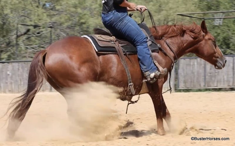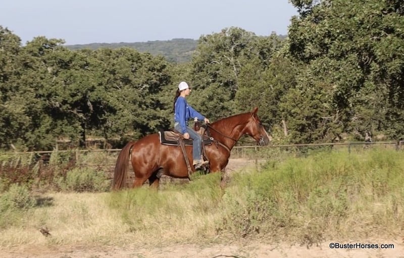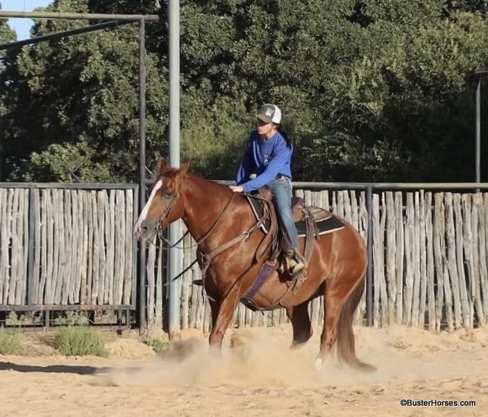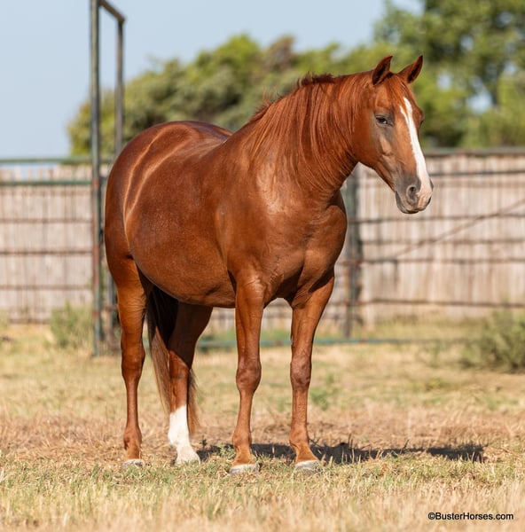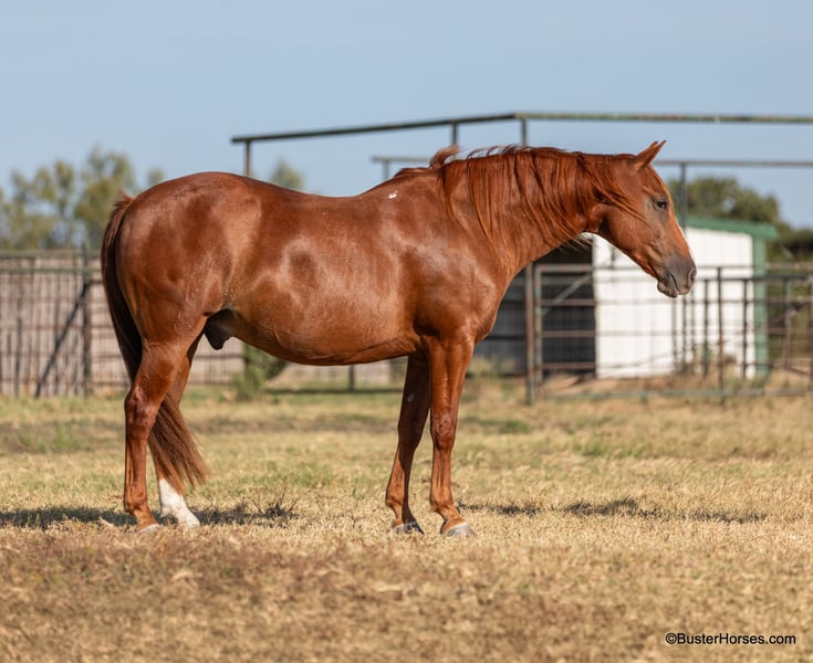 ONLINE AUCTION Place your bids at www.PlatinumEquineAuction.com Starting Bid $3500 Auction ends November 3rd, 2024 Need a new saddle? Check out White Rock Saddles on our website or Facebook! “Payday” – 15.1H, 7 year old sorrel grade quarter horse gelding. Payday is a thick, gorgeous made gelding! He is handy broke and has a ton of feel – huge stop, has all the natural rate you could ask for. He has a nice one-hand uncomplicated ranch horse handle on him, has a nice little smooth jog and lope, nice turnaround and stop – super automatic to work a gate on, if he could run the latch he could open and shut the gate for you while you answered texts on your phone! He rides outside just as well alone as he does with others, he has spent most of his riding miles checking cattle and fences and he is very confident and unphased by riding out alone. Payday has been well started on the sled and as a breakaway horse on live cattle, and he is just the right age to go on and do something big with! His last home he was just a trail riding pet and he’s really fat and out of shape, but just needs legged up and he’s ready to go do any job you have for him! He has a very professional all business disposition like your typical ranch using gelding, but he also has a not as typical sweet/kind personality and enjoys attention and affection. He is low maintenance and an easy keeper – he lives out with our “fat” horses and a donkey, and just gets fed a half bucket of cubes each day. He is happily kept up in a stall too – but he loves living out and he gets along with anyone outside in a group of horses. Payday was just trimmed this past week and he has absolutely excellent feet. His teeth were also just done by an equine dentist last month – and at the same time he had his sheath cleaned, his ears preemptively treated for ticks, and he was also power packed wormed. He will arrive at his new home up-to-date and ready to go to work! To see additional videos, go to our website: BusterHorses.com or our Facebook page Buster Horses. Please call anytime for more information Buster Horses Ashley 214-605-7174 Payday is located in Weatherford, TX – one hour from Dallas / Fort Worth International Airport. He is an easy day trip or fun overnight trip to come try out, from anywhere! We are experienced, knowledgeable sellers, and we can help with quickly arranging affordable shipping to any buyer’s location – we have experience shipping worldwide – including regularly to Hawaii, Canada, Mexico, Europe, and South Africa. ONLINE AUCTION Place your bids at www.PlatinumEquineAuction.com Starting Bid $3500 Auction ends November 3rd, 2024 Need a new saddle? Check out White Rock Saddles on our website or Facebook!