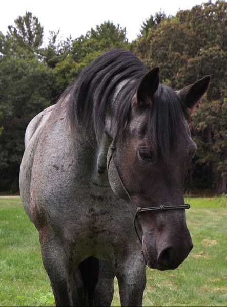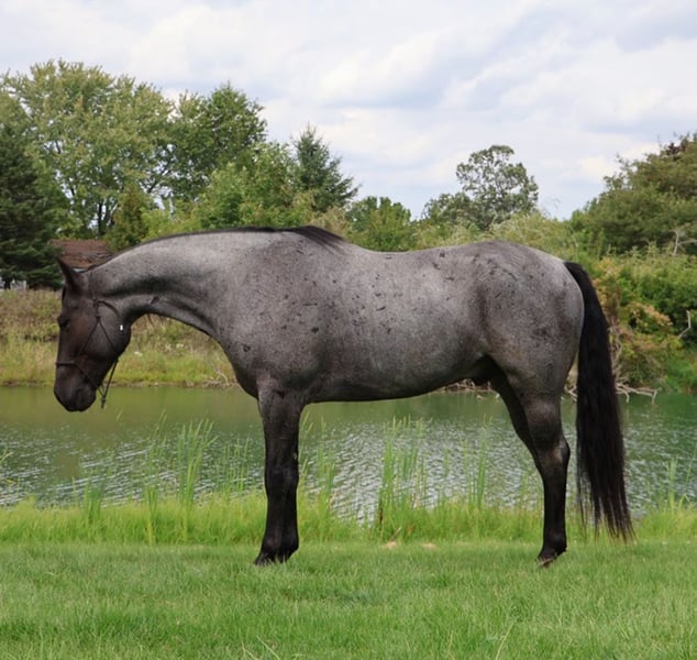 ⚜️ 𝓗𝓮𝓻𝓲𝓽𝓪𝓰𝓮 𝐖𝐢𝐧𝐭𝐞𝐫 𝓒𝓵𝓪𝓼𝓼𝓲𝓬⚜️ Happening now thru MONDAY | DECEMBER 29th - Available EXCLUSIVELY on HorseBid's website! For more details and to register visit: www.Horsebid.com CONSIGNOR CONTACT: Blackstone Stables 248-390-6831 LOCATION: Howell, MI BREED: Quarter horse REGISTERED: No COLOR: Blue Roan HEIGHT: 15.1 AGE: 8 GENDER: Gelding Meet Sky, he is an 8 year old 15.1hh true blue roan grade quarter horse gelding. Sky has the most stunning color you will see! He has a gorgeous black mane and tail that compliments his blue roan coat beautifully. Sky has nice sturdy conformation. He has some of the best ground manners you may see on a horse. He stands tied anywhere, to anything, as long as you like. He's extremely patient for grooming, tacking and just to be doted on. Sky has mainly been a trail horse. He's been ridden on the road, in open fields and deep woods. He has also been ridden in the arena. Sky will walk trot and canter with ease. His transitions are effortless. He has a happy go lucky attitude and a great work ethic! Sky can live inside or outside and gets along very well with all other horses and ponies in turn out. If you're looking for a stunning blue roan that can go in any direction, check out his video!!
