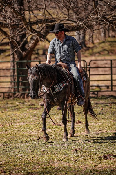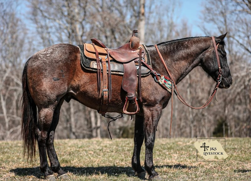 ONLINE AUCTION Place your bids at www.PlatinumEquineAuction.com Starting Bid $3500 Auction ends March 30th, 2025 Need a new saddle? Check out White Rock Saddles on our website or Facebook! PR BUCKS BLUE DRIFT… better known as B.B. around our place- is one of the nicest, and most willing ranch horse geldings we have ever had the pleasure of using. B.B is a true blue roan AQHA gelding standing 15.1 and is built like a using horse should be. He has been used out in the pasture catching, doctoring and loading cattle for a living, along with halter-breaking colts, riding fences, trail riding and everything in between. He truly is a versatile gelding around our place and will always get the job done for you. He is a gelding that will last you all day on the job and give you his all every step along the way. B.B. knows his job and is ready to go to work at any given moment. He is one hand broke, side passes with ease, will work the gates, hold the holes and stay ground tied all day. You won’t find much that phases this gelding. He is truly as user friendly for anyone wanting a ranch horse as they come. B.B. is not an (in your pocket) type gelding, however, even though he may not be looking to be someone’s next pet, don’t let the heart this horse has fool you. Not only does he have the grit and dedication to get any job you need done about the ranch, but the mindset it takes to get the job done correctly. So if you’re looking for a true handy, ranch gelding to go out and get the job done and look flashy while doing it, then B.B. might just fit into your herd. If you have any questions, would like to make a Buy It Now Offer or set up a Facetime Call, contact J & S Livestock JT 931-698-7159 Located in Santa Fe, TN. ONLINE AUCTION Place your bids at www.PlatinumEquineAuction.com Starting Bid $3500 Auction ends March 30th, 2025 Need a new saddle? Check out White Rock Saddles on our website or Facebook!