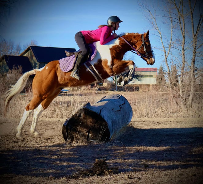 ONLINE AUCTION Place your bids at www.PlatinumEquineAuction.com Starting Bid $3500 Auction ends March 16th, 2025 Need a new saddle? Check out White Rock Saddles on our website or Facebook! Ringo is an 8 year old 15.1 hand absolutely stunning paint gelding with a heart as big as his coloring!! Ringo is easy to handle in all aspects, very respectful on the ground and in saddle, gets along with other horses and is first to meet you at the gate! Ringo stands for the vet and farrier, self loads and backs out, stands tied and is all around an easy going guy. Ringo has had a rope thrown off of him, been trail ridden extensively in town and around lots of commotion as well as up in the mountains with steep and rugged terrain, he’s been started in the western pleasure world and has an extremely lofty trot and lope and is an absolutely stunning mover with a sliding stop and gorgeous transitions! Ringo is also started English and over fences and he has a ton of scope and athleticism, Ringo does not miss a beat. Ringo would excel in the cross country or hunter jumper world! He can be as quick and as athletic as asked for but will also drop his head and be as slow as you want as soon as needed as well. This guy is young, athletic, smart and has dabbled in just about anything you could think of! Check out his video and come meet this sweet (and stunning) boy. Located in Fort Collins, CO. Contact Dynamite Horses Thea 970-632-3644 with any questions. ONLINE AUCTION Place your bids at www.PlatinumEquineAuction.com Starting Bid $3500 Auction ends March 16th, 2025 Need a new saddle? Check out White Rock Saddles on our website or Facebook!