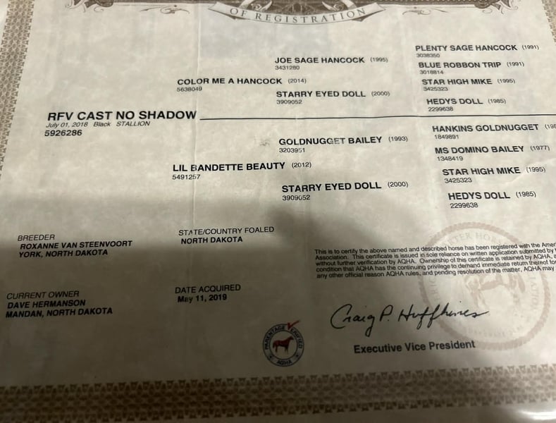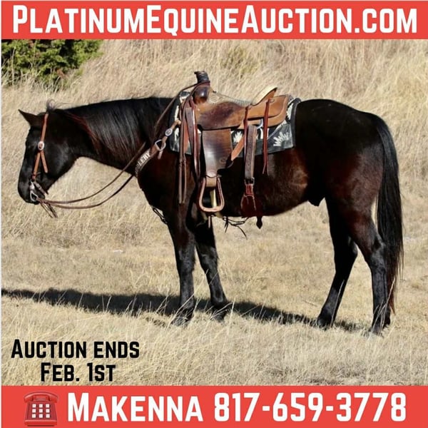 ONLINE AUCTION Place your bids at www.PlatinumEquineAuction.com Starting Bid $3500 Auction ends February 1st, 2026 Need a new saddle? Check out White Rock Saddles on our website or Facebook THE ULTIMATE ALL AROUND HORSE YOU’VE BEEN LOOKING FOR! 🔲FINISHED Head Horse 🔲Established Ranch Horse 🔲Ranch Rodeo Horse 🔲 Fun Trail Horse RFV CAST NO SHADOW ♾️2017 model AQHA black Gelding♾️ ♾️15.2 hands tall, weighs 1200lbs♾️ The first thing people notice about Gucci is that he’s simply gorgeous. He is shapey with a big soft kind eye and he has a cool ranchy look about him that always gets attention. He’s also a perfect size, easy to mount with great substance and presence. Gucci is a FINISHED head horse with lots of run, rate and easy as can be to rope on. He is good in the box, and makes a good move in the field. He has enough for the open down, will rate down well for a low number roper as well. He has been heeled on quite a bit and breakawayed the sled some! Gucci is a fun one to take down the trail, he is as chill as they get! He crosses through anything, traffic safe and will go all day! This guy is cool as a cucumber, not much of anything bothers him. Really nice, gelding ready for his person! You are more than welcome to come out and see him, we are located in 🔆Mineral Wells Texas.🔆 If you are not able to see him in person, we offer FaceTime showings as well and can help arrange hauling anywhere in the US, Hawaii or Canada! Please call or text Makenna Hartzel 817-659-3778 for more information about our outstanding gelding! ONLINE AUCTION Place your bids at www.PlatinumEquineAuction.com Starting Bid $3500 Auction ends February 1st, 2026 Need a new saddle? Check out White Rock Saddles on our website or Facebook