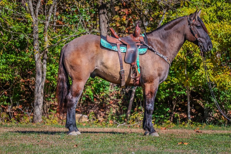 ONLINE AUCTION Place your bids at www.PlatinumEquineAuction.com Starting Bid $3500 Auction ends November 10th, 2024 Need a new saddle? Check out White Rock Saddles on our website or Facebook! This is “LUKE”, a big stout gorgeous PERCHERON QUARTER HORSE CROSSBRED gelding that has been used for ranch work and trail riding. This gelding is handsome, cool, collected, and is the hard to find kind. He stands 16 hands tall and is 7 years old in the prime of his life. He has been ridden in big timber, in the mountains, has been across rivers, and in the deep steep woods. He can carry any size rider all day long. He will ride out alone with no issues. He has been in the arena as well and will lope nice circles and he has a nice soft jog. He will stop nicely on whoa and will back up. He moves off of leg cues and will one hand neck rein. He stands tied, has good ground manners, and gets along well with other horses. He rides low headed and calm. He has been on large rides with many other horses and doesn’t care if he leads the pack or brings up the rear. He is built right, has a good mind, and has lots of outside miles and experience. If you want a big stout GRULLA CROSSBRED with good bone, good feet, and a solid build, check him out. Call HH Horses Erin 304-238-4155 Located in Flemingsburg, KY. ONLINE AUCTION Place your bids at www.PlatinumEquineAuction.com Starting Bid $3500 Auction ends November 10th, 2024 Need a new saddle? Check out White Rock Saddles on our website or Facebook!