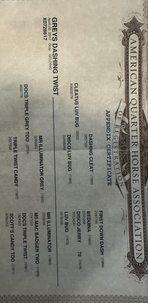 ONLINE-AUKTION Geben Sie Ihre Gebote unter www.PlatinumEquineAuction.com ab. Startgebot $3500 Die Auktion endet am 28. Juli 2024. Brauchen Sie einen neuen Sattel? Schauen Sie sich White Rock Saddles auf unserer Website oder Facebook an! Greys Dashing Twist alias "Zeus" ist ein 7-jähriger Appendix Registered Quarter Horse Wallach mit einem Stockmaß von 16,2H. Dieser große Kerl hat die typische Wallach-Persönlichkeit, die mit dem Strom schwimmt. Er ist sehr willig zu gefallen und versucht sein Bestes zu tun, was immer Sie verlangen. Zeus ist für seine Größe recht athletisch und kann aufgrund seiner Sportlichkeit verschiedene Disziplinen absolvieren. Seine körperlichen Fähigkeiten sind nicht seine einzigen Attribute, denn er ist äußerst intelligent und weiß, wie er schwierige oder stressige Situationen am besten meistert. Zeus bevorzugt die englische Reitweise, lässt sich aber auch gut im Westernreiten reiten. Ich glaube, dass er sich in den meisten englischen Disziplinen auszeichnen wird. Er ist sehr ruhig und willig unter dem Sattel und geht fröhlich im Schritt, Trab und Galopp in beide Richtungen am lockeren Zügel. Er ist darauf trainiert, auf Bein- und Sitzdruck zu hören, sowie auf den direkten Zügel oder den Halszügel. Zeus kann ohne Probleme mit oder ohne andere Pferde geritten werden. Zeus hat ausgezeichnete Bodenmanieren, er lässt sich striegeln, satteln und baden. Er lässt sich traumhaft auf den Anhänger verladen und wieder abladen. Er lebt gerne draußen mit anderen Pferden zusammen und ist in der Regel in der Herde rangniedriger, aber auch im Stall macht er sich gut. Er ist ein wundervolles Pferd und hat viel Potential als Englischpferd, aber er wird auch ein ausgezeichnetes Trailpferd sein. Zeus ist derzeit barfuß, kann aber nach Absprache beschlagen werden, bevor er meine Anlage verlässt, wenn Sie dies wünschen. Er wurde kürzlich von unserem Tierarzt, Zahnarzt und Chiropraktiker untersucht und ist somit bereit für sein neues Zuhause! Für weitere Informationen oder Fragen zu Zeus kontaktieren Sie bitte Sydney von SRS Training and Sales unter 518-935-8282. Zeus befindet sich in Granbury, TX, aber das SRS-Team ist gerne beim Versand in den gesamten USA behilflich. ONLINE-AUKTION Geben Sie Ihre Gebote unter www.PlatinumEquineAuction.com ab. Startgebot $3500 Die Auktion endet am 28. Juli 2024. Brauchen Sie einen neuen Sattel? Schauen Sie sich White Rock Saddles auf unserer Website oder Facebook an!