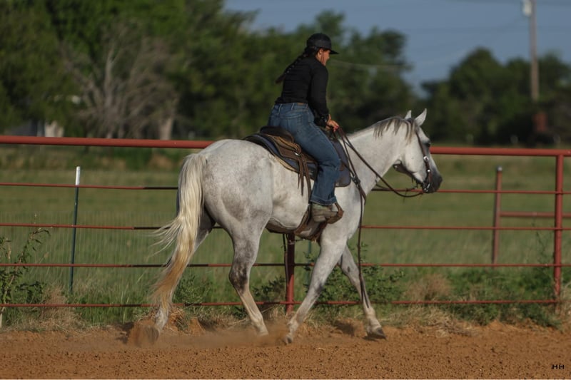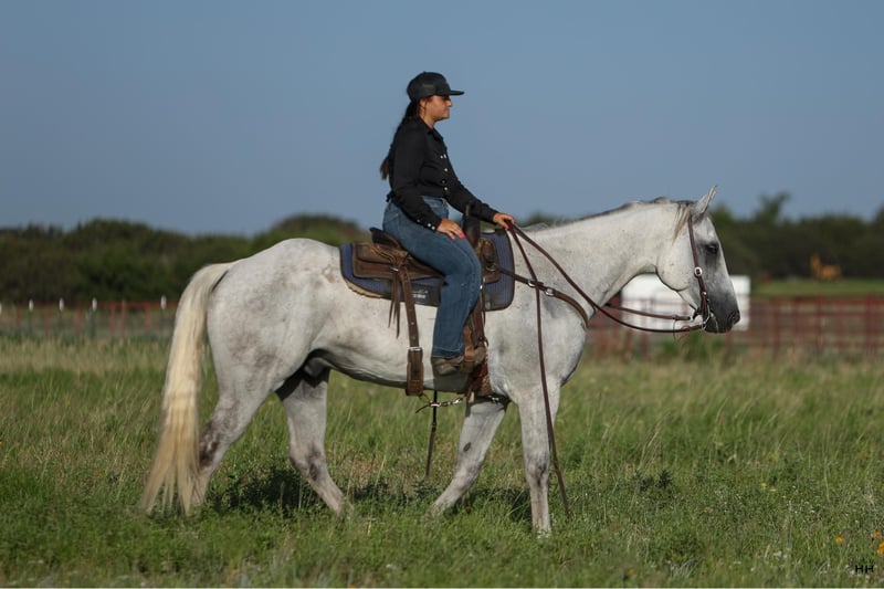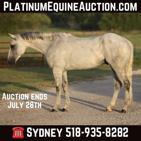 ONLINE AUCTION Place your bids at www.PlatinumEquineAuction.com Starting Bid $3500 Auction ends July 28th, 2024 Need a new saddle? Check out White Rock Saddles on our website or Facebook! Greys Dashing Twist aka “Zeus” is a 7 year old Appendix Registered Quarter Horse gelding that stands at 16.2H. This big guy has your typical go with the flow gelding personality. He is very willing to please and tries his hardest to do whatever you ask. Zeus is quite athletic for his size and is capable of various disciplines because of his athleticism. His physical abilities aren’t his only attributes as he is extremely smart and figures out how to navigate hard or stressful situations quite easily. Zeus prefers to be ridden English but will go nicely Western as well. I believe he will excel in most English disciplines. He is very calm and willing under saddle and will happily walk, trot, canter both ways on a fairly loose rein. He is trained to listen to leg and seat pressure as well as direct or neck reins. Zeus can be ridden with or without other horses with no problems. Zeus has excellent ground manners, he stands to be groomed, saddled, and bathed. He loads on and off the trailer like a dream. He is happy to live outside with other horses and is typically lower in hierarchy in the herd, he does well in a stall also. He is a wonderful horse to be around and has a lot of potential as an English horse, but will also make an excellent trail horse as well. Zeus is currently barefoot but arrangements can be made to shoe him before he leaves my facility if you’d prefer. He has also recently been seen by our vet, dentist, and chiropractor so he is all set to go to his new home! For more information or questions about Zeus please contact Sydney with SRS Training and Sales 518-935-8282. Zeus is located in Granbury, TX but the SRS team is happy to assist in shipping across the US. ONLINE AUCTION Place your bids at www.PlatinumEquineAuction.com Starting Bid $3500 Auction ends July 28th, 2024 Need a new saddle? Check out White Rock Saddles on our website or Facebook!