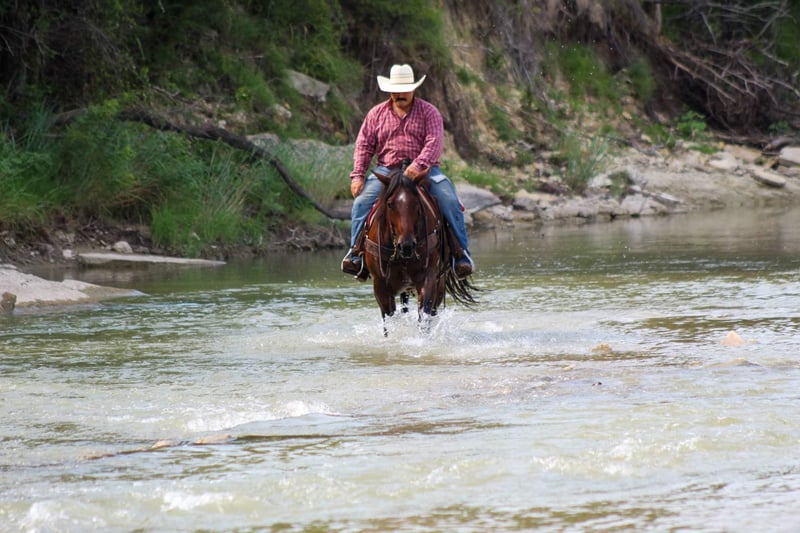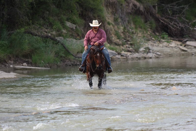 ONLINE AUCTION Place your bids at www.PlatinumEquineAuction.com Starting Bid $3500 Auction ends September 8th, 2024 Need a new saddle? Check out White Rock Saddles on our website or Facebook! Pablo is a stunning 7 year old bay roan gelding standing 14.3 hds tall and as wide as a mac truck ! He has an old soul demeanor to him and acts like a seasoned veteran wherever you take nothing bothers him and I mean nothing! He has been on several trail rides and hunting trips in the Rocky Mountains. He can go up and down any mountain and is sure footed . He always rides low headed and never raises his head above the saddle horn just like one should . He has been rode down the historic Forth Worth Stockyards and handled all the commotion, crowds of people , and traffic like a seasoned pro . He has zero spook to him and would ride to war if you asked him to. He is a blast to ride down the trail , he is confident and goes wherever you point him up and down hills, crosses water, bridges, logs and tarps with zero issues. He has seen many wildlife out on his adventures. In the arena he will walk , trot and lope circles with a great stop ! The great thing about him you don’t have to be a cowboy to ride as long as you can sit up there and hold the reins you can ride him wherever you want . From the trails to checking your herd of cattle he’s the one for the job . Pablo has a bright future of him and someone is going to enjoy him for many years to come . He is a barn favorite and I just know at his next home he’s gonna be the favorite also . He is the first one to meet you at the gate , he stands tied , easy to tack up and bridle , stands for the farrier, baths, loads and unloads like the perfect gentleman he is. Keep him in a stall or a pasture he doesn’t care. He is currently turned out with two other geldings . Hes got a ton of personality and in your pocket !Contact us to come try him or we can set up a FaceTime also. If you need help with transport don’t hesitate to ask we have a list of reputable haulers that can get him safely to your doorstep world wide. Located in Stephenville, TX. Contact M$ Performance Horses Michelle 661-817-9120. ONLINE AUCTION Place your bids at www.PlatinumEquineAuction.com Starting Bid $3500 Auction ends September 8th, 2024 Need a new saddle? Check out White Rock Saddles on our website or Facebook!