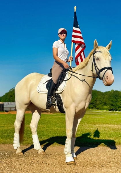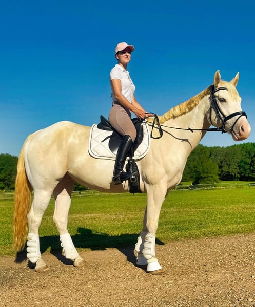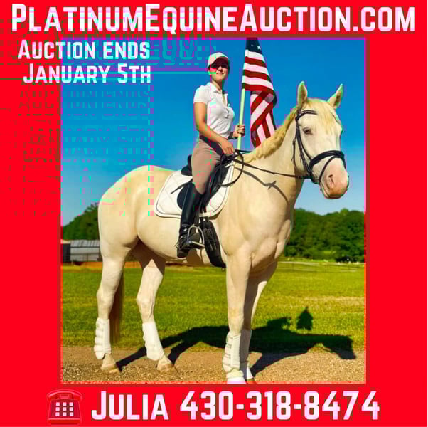 ONLINE AUCTION Place your bids at www.PlatinumEquineAuction.com Starting Bid $3500 Auction ends January 5th, 2024 Need a new saddle? Check out White Rock Saddles on our website or Facebook! Meet Champs Laced Apollo (“Apollo”) – a stunning 15.3-hand, 2017 Model, registered American Paint Horse Association (APHA) gelding with a unique champagne tobiano coat that gleams like liquid gold in the sunlight. His fairytale look is matched by a calm, steady personality and a friendly, reliable disposition. Apollo is as friendly as he is dependable. Calm and confident, he greets his handler every morning and is ready to bond with his next rider. He’s wonderful with children, beginner riders, and even those new to horses, adapting smoothly to their level. Apollo is great with other horses and doesn’t spook, making him a fantastic companion on the trail or around the barn. Apollo has been trained primarily in western riding but has recently taken on English riding with ease. He’s the ideal trail horse – safe, sure-footed, and unfazed by traffic or new environments. He’s also comfortable bareback or ridden with just a halter and lead rope, showing his adaptability and trustworthiness. Though beginner-friendly, Apollo also has potential for more advanced riders to bring him to higher levels. Apollo is in top health, up-to-date on vaccinations, worming, and farrier care. He’s easy to handle for grooming, saddling, and loading onto a trailer, making him low- maintenance and stress-free. Apollo would thrive in a family setting or with a beginner looking for a safe, gentle companion. He also has plenty to offer for advanced riders who want a beautiful, loyal horse to enjoy on trails or in training. This is a rare opportunity to own a horse as stunning and versatile as Apollo – the perfect blend of beauty, personality, and reliability. Contact Julia Gonzales 430-318-8474 Located in Texarkana, TX if you’d like to come meet Apollo and see if he’s the horse you’ve been dreaming of! ONLINE AUCTION Place your bids at www.PlatinumEquineAuction.com Starting Bid $3500 Auction ends January 5th, 2024 Need a new saddle? Check out White Rock Saddles on our website or Facebook!
