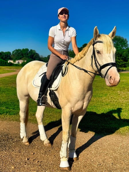Vi presentiamo Champs Laced Apollo ("Apollo"), uno splendido castrone di 15,3 mani, modello 2017, registrato dall'American Paint Horse Association (APHA), con un manto tobiano champagne unico che brilla come oro liquido alla luce del sole. Il suo aspetto fiabesco è accompagnato da una personalità calma e stabile e da un carattere amichevole e affidabile. Apollo è tanto amichevole quanto affidabile. Calmo e sicuro di sé, saluta il suo addestratore ogni mattina ed è pronto a legare con il suo prossimo cavaliere. È bravissimo con i bambini, con i cavalieri principianti e anche con chi è alle prime armi con i cavalli, adattandosi senza problemi al loro livello. Apollo è ottimo con gli altri cavalli e non si spaventa, il che lo rende un fantastico compagno di viaggio sui sentieri o nella stalla. Apollo è stato addestrato principalmente per la monta western, ma di recente ha affrontato con facilità anche la monta inglese. È il cavallo ideale per le passeggiate: sicuro, dal passo sicuro e non spaventato dal traffico o da nuovi ambienti. Si trova a suo agio anche a pelo o con la sola cavezza e il guinzaglio, a dimostrazione della sua adattabilità e affidabilità. Sebbene sia adatto ai principianti, Apollo ha anche un potenziale per i cavalieri più esperti che possono portarlo a livelli più alti. Apollo gode di ottima salute, è aggiornato su vaccinazioni, sverminazioni e cure del maniscalco. È facile da maneggiare per la toelettatura, la sellatura e il caricamento su un rimorchio, il che lo rende a bassa manutenzione e privo di stress. Apollo si troverebbe bene in un ambiente familiare o con un principiante in cerca di un compagno sicuro e gentile. Ha anche molto da offrire ai cavalieri esperti che desiderano un cavallo bello e fedele da utilizzare sui sentieri o in allenamento. Questa è una rara opportunità di possedere un cavallo splendido e versatile come Apollo: la miscela perfetta di bellezza, personalità e affidabilità. Contattate Julia Gonzales 430-318-8474 a Texarkana, TX se volete venire a conoscere Apollo e vedere se è il cavallo che stavate sognando!