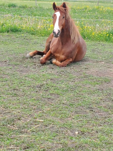 For sale here is my 5-year-old Half American Saddlebred gelding. He is a four-gaited horse with a height of 150 cm. Not suitable for beginners or children. Very sensitive, easy to ride, and hardworking, with high, expressive, and expansive movements. He requires a rider who can provide him with security both in riding and handling. He is a one-person horse. American pedigree and FN passport. Mother: Icelandic, Father: American Saddlebred. Half-brother to the Swedish breeding stallion "Playgirl’s Next Golden Star GPZ." Brought over from Germany. He has a mild dust allergy, which is easy to manage. Currently kept in an open stall. He is currently barefoot but has also worn shoes before. X-rays can be provided upon request. His tack can be purchased separately (+€500) if desired.