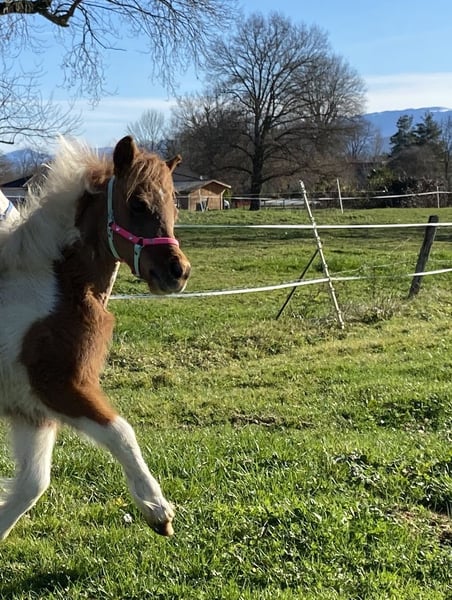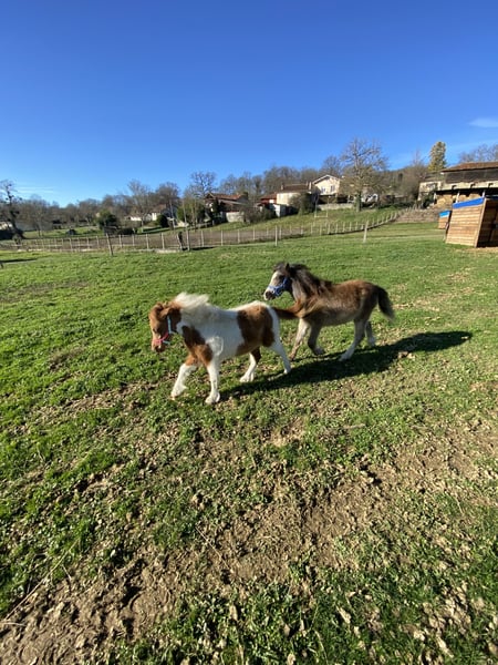 Petite fille de Tender Boy et fille de mon adorable Marigny, étalon multiple champion de France en attelage et modèle et allures , Pirouette porte une excellente génétique .également du coté paternel Élégante et expressive, elle séduit par son modèle harmonieux et ses allures . Gentille et proche de l’humain, elle n’en reste pas moins une petite personnalité : vive, malicieuse, avec ce grain de caractère qui la rend unique et attachante. Pirouette est une pouliche pleine de charme, promise à un bel avenir. Pirouette est née le 21/04/2025 , de robe pie alezan, elle est sevrée et disponible pour une nouvelle famille . Elle a participée a son premier concours AMHA online ou elle s'est classée 2 em meilleure pouliche 2025 .Elle est inscrite AMHA ( USA ) et SIRE (FRANCE ) est vermifugée régulièrement suivant le protocole de l'élevage. Plus d'infos sur demande . Photos 7 et 8 son père : SO CHIC DARK DESTINY COMTE MARIGNY Photos 9 et 10 sa mère : LMH KALINKA BY TENDER