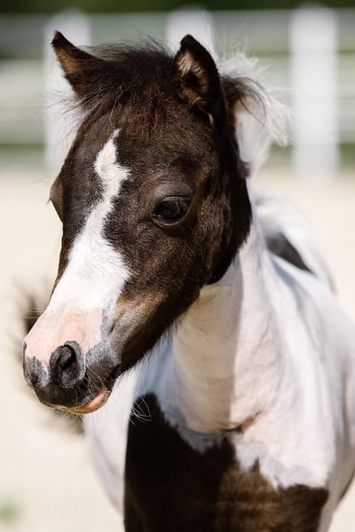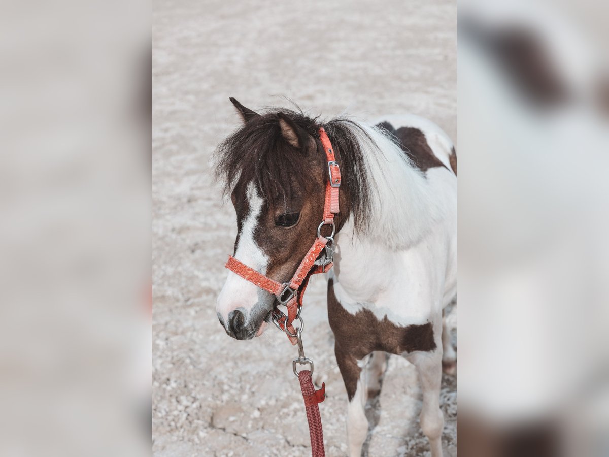 Little Beauty’s Bella – klacz z amerykańskimi dokumentami AMH Z powodu braku czasu z ciężkim sercem poszukuję dla mojej Bellli domu o najwyższej jakości, 5-gwiazdkowego standardu. Przepiękna klacz ma 4 lata i jestem jej właścicielem od 3 lat. Uwielbia być w centrum uwagi i być wyzywaną. Praca na lonży, małe skoki i spacery nie stanowią dla niej problemu zarówno solo, jak i w stadzie. Obecnie mieszka w stada czteroosobowego (miniaturki i owca) w ośrodku sportowym i zna również większe konie, dzieci, kowala, jazdę w przyczepie, halę, itp. Życzę sobie dla tego wyjątkowego miniaturowego konia idealnego domu z dużą przestrzenią do biegania, przyjaznym stadem i osobą, która poświęci mu dużo uwagi. Ze względu na jej odważny charakter, bardzo dobrze wyobrażam ją sobie w przyszłości do terapii. Dzięki jej doskonałemu pochodzeniu i amerykańskim dokumentom, z pewnością będzie też interesującym materiałem hodowlanym! Ważne: Ze względu na rasę, NIE MOŻE być użytkowana do jazdy! Rasa ta nie jest również odpowiednia dla dzieci jako koń do jazdy! 4 🥕 Wszystkie akcesoria w zestawie (halter, lonża, derki, specjalne miniaturowe jedzenie, itp.)