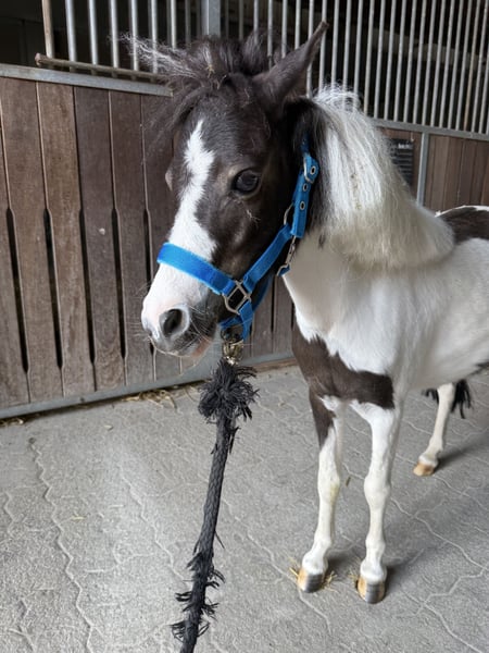 Little Beauty’s Bella – American-bred mare with American papers Due to lack of time, I am sadly looking for a 5-star home for my Bella. This stunning mare is 4 years old and I have owned her for 3 years. She loves being the center of attention and being challenged. Groundwork, small jumps, and walks are no problem for her, whether alone or in a herd. Currently, she lives in a group of four (including minis and a sheep) at a riding stable, and she is also familiar with full-sized horses, children, farriers, trailer loading, indoor arenas, etc. I am hoping to find this amazing mini a dream home with plenty of turnout, a friendly herd, and someone who will give her lots of attention. Thanks to her fearless nature, I can very well imagine her later working in therapy. Due to her top pedigree and American papers, she is also certainly interesting for breeding! Important: She cannot be ridden due to her breed-specific characteristics! She is also not suitable as a riding horse for children. 4 carrots 🥕🥕🥕🥕 Including all accessories (halter, lead rope, blankets, mini-specific feed, etc.)