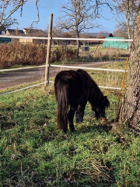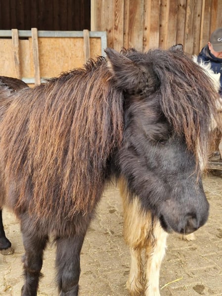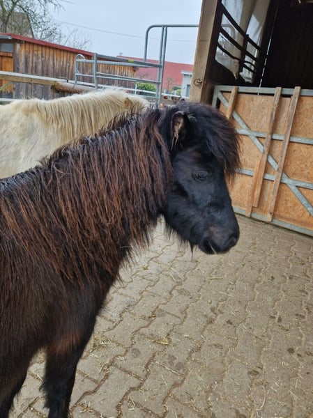 Fine Art is a particularly sweet, friendly, small mare who never pushes herself forward and always stays in the background. Very honest and gentle in her handling, she does not pull on the lead rope, goes everywhere willingly, and is extremely eager to avoid trouble. Even within the herd, she tends to keep her distance and calmly lines up at the back. Unfortunately, she is constantly pushed out and excluded by the two larger minis in our herd. Therefore, we are looking for a new home with more compatible herd members for her. We can also easily imagine Finny as a therapy pony, as she radiates so much calmness and balance. She is the perfect companion pony! Like all small minis, she is not suitable for riding, only for walks, cuddling, or, of course, carriage driving. Finny has already had a few foals with her breeder in Denmark, which she delivered without any issues. Of course, she is regularly dewormed, her hooves are maintained, and she is vaccinated against tetanus.