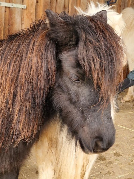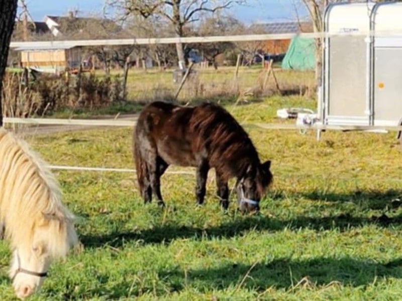 Fine Art est une jument particulièrement douce, amicale et petite, qui ne cherche jamais à prendre le devant de la scène et reste toujours en retrait. Très honnête et délicate dans sa manière d’être, elle ne tire pas sur la longe, accompagne partout et fait tout son possible pour éviter les ennuis. Même dans le groupe, elle se montre réservée, se plaçant calmement en dernière position. Malheureusement, chez nous, elle est constamment repoussée et marginalisée par les deux plus grands minis. C’est pourquoi nous cherchons pour elle un nouveau foyer avec des membres de troupeau plus sociables. Nous pouvons également envisager Finny comme un poney de thérapie, car elle dégage tellement de calme et d’équilibre. C’est la compagne idéale ! Comme tous les petits minis, elle n’est pas adaptée à la monte, mais uniquement pour des balades, des câlins ou, bien sûr, en voiture. Finny a déjà eu quelques poulains chez son éleveuse au Danemark, qu’elle a toujours mis au monde sans problème. Elle est bien entendu régulièrement vermifugée, ses sabots sont entretenus et elle est à jour de ses vaccinations contre le tétanos.