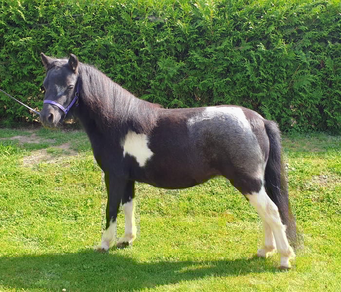 Unser Sternchen ist eine ganz liebe, korrekte und bewegungsstarke AMHA-Stute mit einem Stern auf ihrer Seite aus eigener Zucht! Sie wurde bereits als Fohlen vom ZfdP mit einer 9,0 prämiert und wurde erwachsen als Verbandsprämienstute ins Stutbuch eingetragen. Bislang hatte sie zwei Fohlen, die beide prämiert wurden. Ihr letztes Fohlen aus 2024, eine Champagnerisabellstute wurde mit einer 8,5 prämiert und wird unter Umständen auch verkauft. Sie hatte zwei problemlose Geburten und ist eine tolle Mama. Sternchen ist gesund, wird 6-wöchig dem Huforthopäden vorgestellt und ist selbstverständlich regelmäßig geimpft und entwurmt. Sie steht im Offenstall mit Mini-Gesellschaft und Endmaßponys und ist sehr gut sozialisiert. Sternchen ist mit Kindern aufgewachsen und ist brav im Umgang, leider sind meine Kinder nun zu groß und ich habe aus persönlichen Gründen die Zucht aufgegeben, weswegen sie einfach zu kurz kommt. Die Fotos zeigen Sternchen vom Fohlen bis zum Erwachsenenalter. Abstammung siehe letztes Foto - ein Juwel für die Zucht aber auch einfach nur als Freizeitpartner! Sternchen wird nur in beste Hände verkauft! Weitere Infos auf Anfrage.