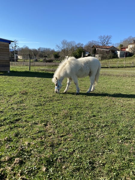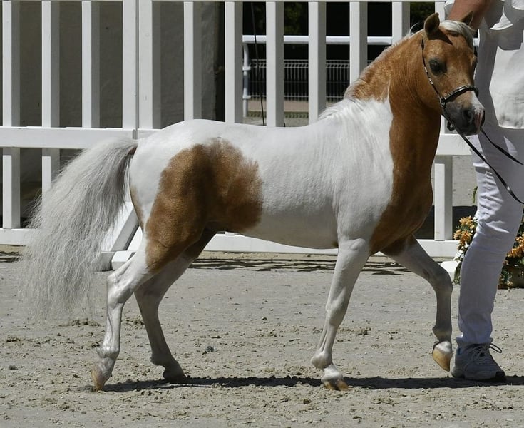 Prestige Boy est un superbe poulain AMHA ( USA ,papiers déjà reçus ) inscrit également au SIRE ( France ) . Il a d'excellentes origines ,son père EBF JOHNS POL TENDER BOY est multiple Champion de France modèle et allures , son grand père: SAMIS VIP MISTER JOHN a été un des chevaux miniatures le plus titré en EUROPE . Prestige possède un modèle avec un dos court ,une très belle tête arabisée , et des allures aériennes . Il a participé a son premier concours de modèle online et a été classé :meilleur foal de l'année 2025 . Il est de robe :Pie Palomino clair et doré , il est ne le 16/06/2025 , il est sevré et disponible dés a présent . Vermifugé régulièrement suivant le protocole de l'élevage , parage et vaccins a jours au moment de son départ bien sur également . photos 7 et 8son père EBF JOHNS POL TENDER BOY Photos 9 et 10 sa mère MINI RIDGE GIA