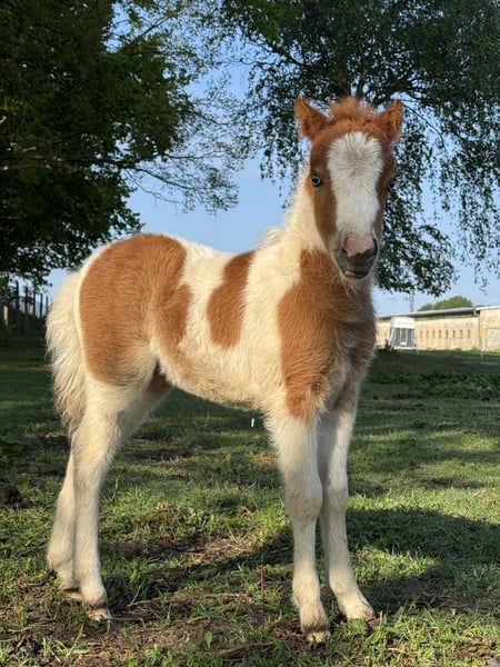 AQM Celtics Under A Violet Moon Père : AQM Fantasys A Celtic Dream Mère : Godts Wild Bluebell Né : 13.04.2025 Taille finale : environ 34“ Un poulain étalon très spécial cherche son foyer cinq étoiles. Il est long de jambes, correct, avec beaucoup de mouvement et une belle tête arabe. Son pelage original avec des yeux bleus est la cerise sur le gâteau. Je le vois dans le futur comme cheval d'attelage, pour des leçons de cirque ou des spectacles. En tout cas, ce poulain fait partie de ceux qui ont besoin d'occupation. Il ne doit en aucun cas être vendu comme simple tondeuse à gazon. Sa mère est l'un de mes chevaux d'attelage préférés et un véritable powerhouse avec de nombreux succès en spectacle. Il recevra des papiers AMHA, AMHR et EUSAM. Pour plus d'infos, photos et vidéos, suivez-nous également sur Instagram : aquamarineminiatures