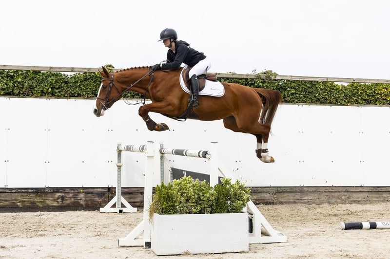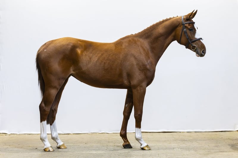 Horse with a lot of overview at the jump and a consistent way of jumping. Shows a good attitude and picks up the work well, despite being only one month under saddle. Shows good technique and scope and jumps consistently. Interesting as a showjumping horse with additional potential towards a hunter career. Sire Colorit – 1.60m level. International showjumper and proven sire with offspring at 1.60m level such as Carlson 86 and Concordia 49. Dam I.Adermie – 1.10m level. Damline Granddam V.Adermie 13 – 1.30m. From this line come: Athena – 1.50m Enjoy – 1.60m Jandino – 1.55m Pumuckl – 1.50m Kensington – 1.50m Additionally multiple horses at 1.45m, 1.40m and 1.35m level. Approved stallion: Arthos R – 1.60m.