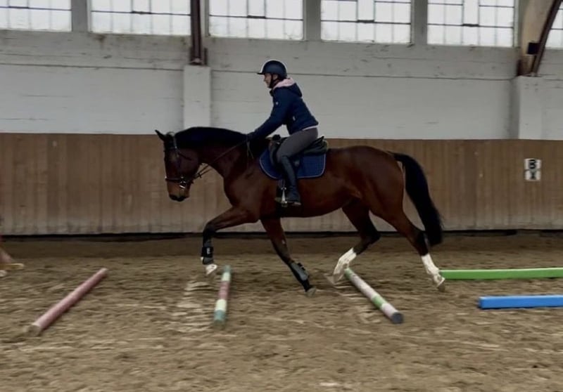 Mare, 4 years old, 16.1 hh, with excellent pedigree: Q'Chacco Blue van Essene / Chacco Blue × Casco / Narcos Il A stunning, eye-catching mare that has everything a young sport horse at the highest level should possess. She is strong, dynamic, and precise over fences. She craves human interaction, is eager to cooperate, rideable, and easy to handle, yet she also has a spark (thanks to her grandsire Chacco). Under the saddle, she is delicate to aids, comfortable, and a pleasure to ride. She moves beautifully and looks even better. Healthy, with recent TUV examinations.