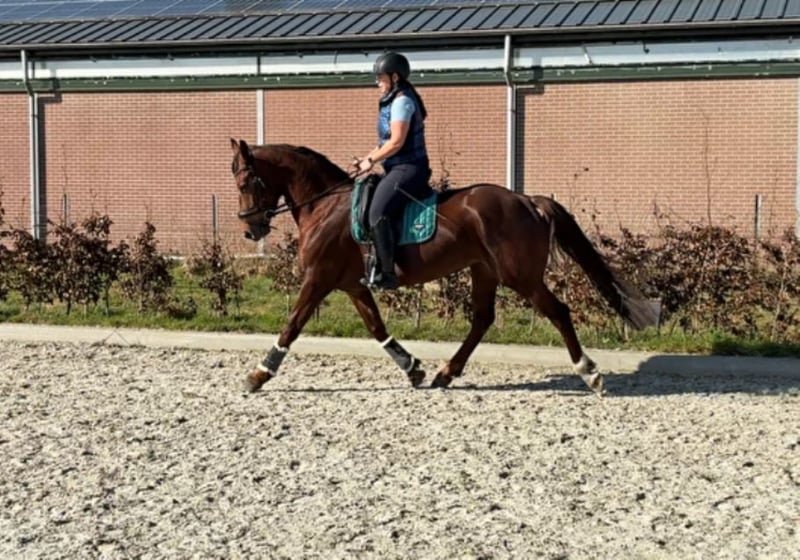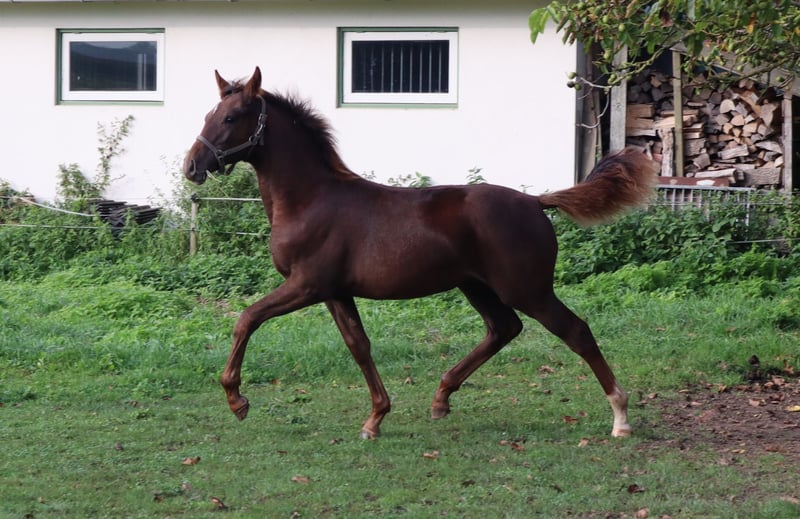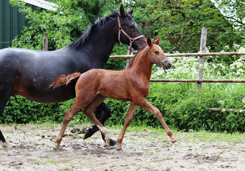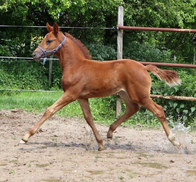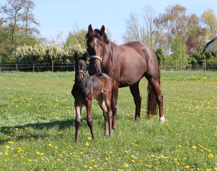 Amora ist eine schöne DA-Stutfohlen mit großem Potenzial für Dressur, aber auch für Springen. Zwischen den Fotos befindet sich ein Bild von ihrem 11 Tage alten Fohlen, das am 11. April geboren wurde. Ebenfalls zwischen den Fotos sind drei Bilder von ihrer eigenen Fohlentagezeit – sie bewegte sich schon immer perfekt und tut es auch heute noch wie keine andere. Im Jahr 2025 wurde sie von der erfahrenen Tour-Reiterin Kim Telgen eingeritten und anschließend wieder nach Hause gebracht, da sie tragend war und ein wunderschönes Stutfohlen zur Welt brachte, das wir behalten werden. Amora ist eine gute Mutter. Die Fotos und Videos unter dem Sattel stammen vom Einreiten und spiegeln daher nicht ihr endgültiges Gangbild unter dem Sattel wider. Die Technik beim Springen verbessert sich bei ihr noch deutlich, je mehr Erfahrung sie sammelt und je höher die Sprünge werden. Das war bei ihrer Mutter und Großmutter ebenfalls der Fall. Amora springt mit viel Power losgelöst, unter dem Sattel hat sie noch nicht gesprungen. Eine beeindruckende Erscheinung aus dem Karla-Stamm und direkt verwandt mit den KWPN-Zuchtstuten Transvaal und Blue Horse Kingston. Tatsächlich auf hohem Dressur- und Springsniveau. Amora kann nach dem 1. November zu ihrem neuen Besitzer ziehen. Kontakt: edskotakens@kpnplanet.nl
