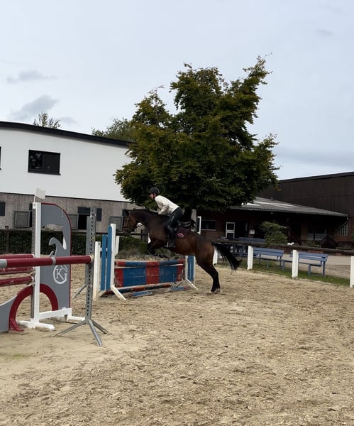 Zum Verkauf steht meine 6 Jährige Stute mit überzeugender Abstammung und vielversprechendem potenzial für Sport und Zucht. Sie zeigt sich äußerst lernwillig, aufmerksam und bewegungsfreudig. Sie verfügt über drei Schwungvolle Grundgangarten, ist klar im Kopf, menschenbezogen und punktet täglich mit ihrem freundlichen und unkomplizierten Wesen. Sie kennt die Arbeit in der Halle, auf dem Platz und im Gelände. Auf dem Turnier und in neuer Umgebung zeigt sie sich souverän und konzentriert. Sie wird regelmäßig geimpft/ entwurmt und wird selbstverständlich regelmäßig dem Schmied vorgestellt. Zähne wurden im Januar gemacht und Anfang September kontrolliert. Ob für ambitionierte Freizeitreiter oder den Einstieg in den Turniersport- diese junge Stute bringt beste Voraussetzungen mit und freut sich auf ihre weitere Förderung. Da ich leider wegen Zeitmangel etwas verkleinern muss freut sich diese Stute über ein neues Passendes zuhause. Bei Interesse oder Fragen freuen wir uns über eine Nachricht oder einen Anruf (unter 015783080018). Probereiten sind nach Absprache jederzeit möglich.