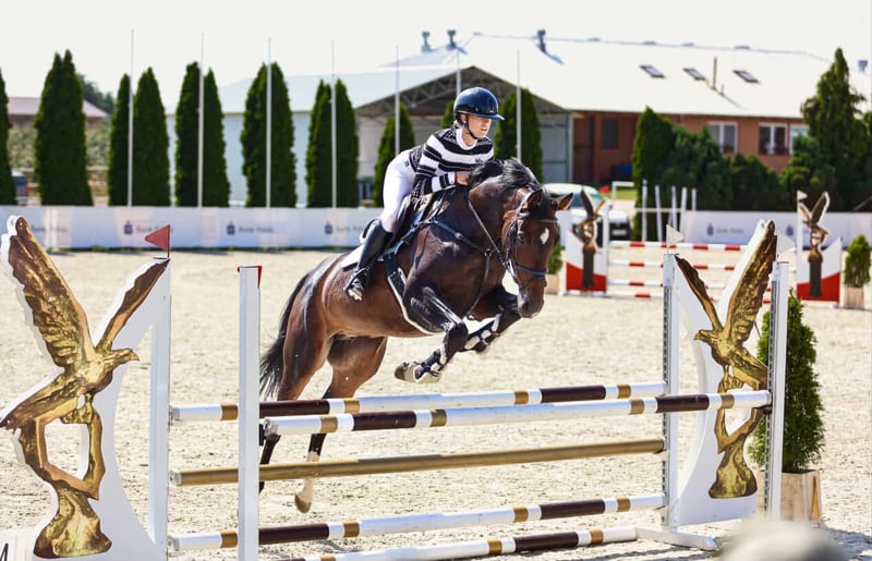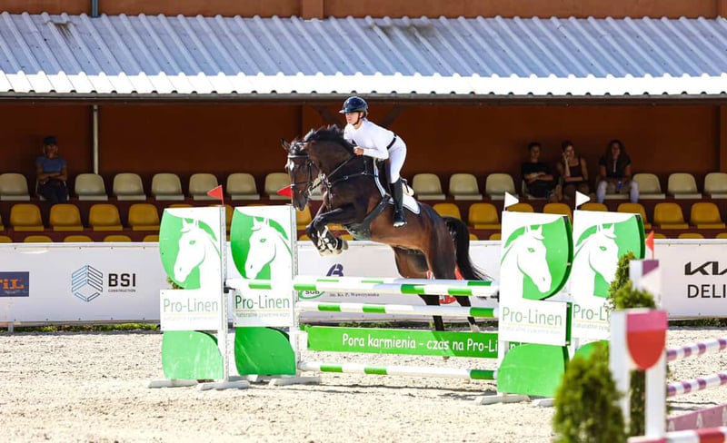 Stute begann im Mai letzten Jahres mit dem Springreiten. Unter der Anleitung von Anna Stasiak hat sie in wenigen Monaten das Niveau von 115 cm erreicht – ein Video vom Turnier ist in der Anzeige zu sehen. Das Pferd ist ausgeglichen, springt motiviert, geht vorwärts, aber ist gleichzeitig sicher und arbeitet gerne mit dem Menschen zusammen. Aus sehr gutem Stamm, nach Connoro, die Mutter stammt von Faust Z ab. Vor Beginn ihrer sportlichen Karriere hat die Stute ein Fohlen bekommen. Verkauf aus persönlichen Gründen. Probesprung ist kostenpflichtig – 100 PLN.