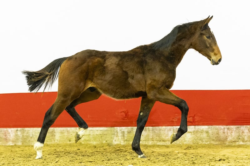 First jumps and he immediately shows his natural talent. Plenty of instinct over the fence, quick off the ground and light-footed in his movement. He shows great commitment and clearly wants to jump to the other side. He jumps with a beautiful technique, stays correct in his body and shows easy scope. A young horse with natural overview and convincing jumping style. Sire Sea Coast Don’t Touch Tiji Hero (1.45m) is by Diamant de Semilly (1.60m) out of a Chin Chin damline. Diamant de Semilly is one of the most influential Grand Prix sires worldwide and produced countless 1.60m horses. Tiji Hero himself competed internationally up to 1.40m–1.45m level and has already produced several 1.60m performers such as Desiree DR Z, Platini de Kalvarie and Django Hero Z. Dam Hindorette (2012) is by Cardento (1.60m, Olympic silver medalist). Second dam Zindorette (by Solitair) comes from a strong KWPN sport family. Third dam Tindorette (sport 1.60m) competed at 1.60m level herself and produced multiple sport horses. Fourth dam Operette (by Indoctro) forms the foundation of this performance family and produced: Tindorette – 1.60m Beaurette – 1.30m Mirdads LPM – 1.30m Laurette – 1.30m A damline with proven 1.30m–1.60m results, combined with Diamant de Semilly, Chin Chin and Cardento blood from the sire line. Scope and technique are deeply embedded in this pedigree..