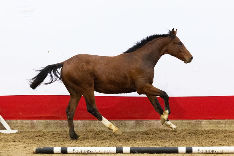 Veldstar, geboren in 2024, scoort hoog met zijn manier van springen. Hij drukt zich snel van de grond en toont kwaliteit. Hij is een volle broer van veilingpaard Hello Henrie. Vader is de 8-jarige AES-hengst His Pleasure Duborget, halfbroer van drie 1.50m en vijf 1.40-1.45m springpaarden en gefokt uit de halfzus van de 1.60m Grand Prix hengsten Rahotep de Toscane en Jadis de Toscane. Moeder Godelief stamt af van Bustique, net als Maikel van der Vleuten’s toppaard Beauville en is een halfzus van een 1.30m springpaard. Grootmoeder Promise voert de waardevolle genen van Concorde x Le Mexico x Almé en is een halfzus van de hengst Billy Mexico (1.70m Grand Prix met William Funnell) en Panama (1.60m Grand Prix).