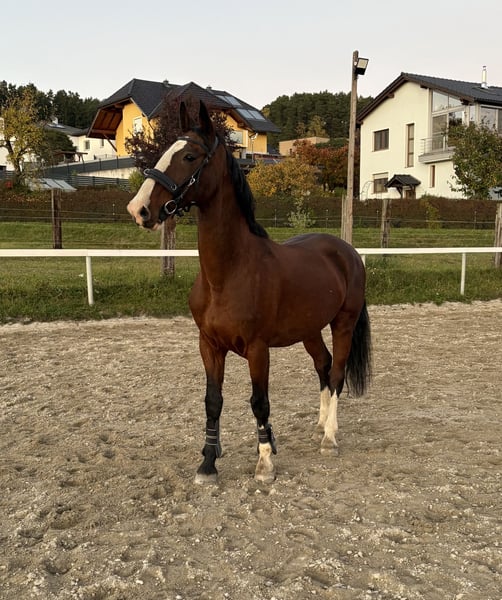 Verkaufe eleganten Wallach – ideal für ambitionierte Fahrer Hallo, ich heiße Dondersteen kurz Anton und ich bin im Anglo European Studbook eingetragen und überzeuge mit einer guten Abstammung. Ich bin für mein Alter kerngesund und fit wie ein Turnschuh! Als ehemaliger Profisportler kenn ich alles was normalerweise meine Kollegen fürchten😂. Als richtiger Angeber in brauner Jacke verstehe ich mich wunderschön zu präsentieren. Ich vertrage mich mit männlichen und weiblichen Kollegen. Habe mit allen Pferdchen Spaß auf der Koppel. Ich lasse mich gerne einspannen für Zwei- oder Einspännig und liebe außerdem Freispringen, Bodenarbeit und Spaziergänge. Was ich nicht mag👆🏻ist geritten werden. Find ich nicht so toll. Ach ja ich habe natürlich einen FEI-Pass. Mein Preis ist auf jeden Fall verhandelbar PS: ich lieeeebe Karotten, Bananen und Rote Rüben